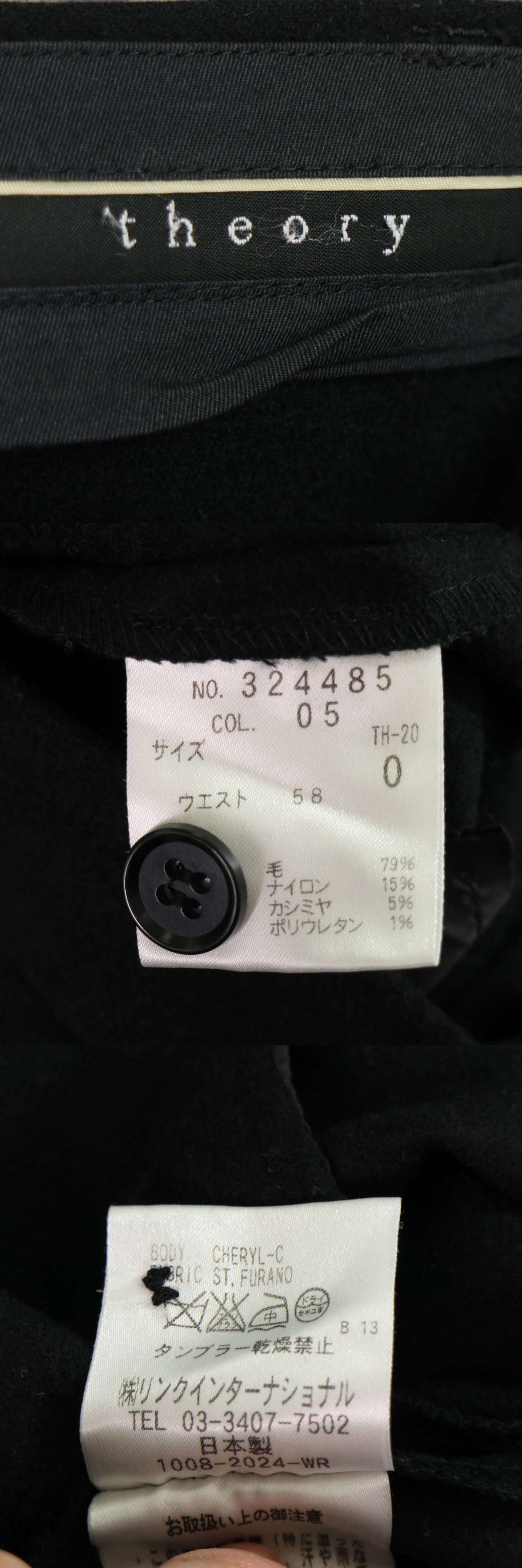 Theory セオリー 秋冬 ウール★ カシミヤ混 スラックス パンツ Sz.ウエスト58 レディース 黒 日本製 收藏