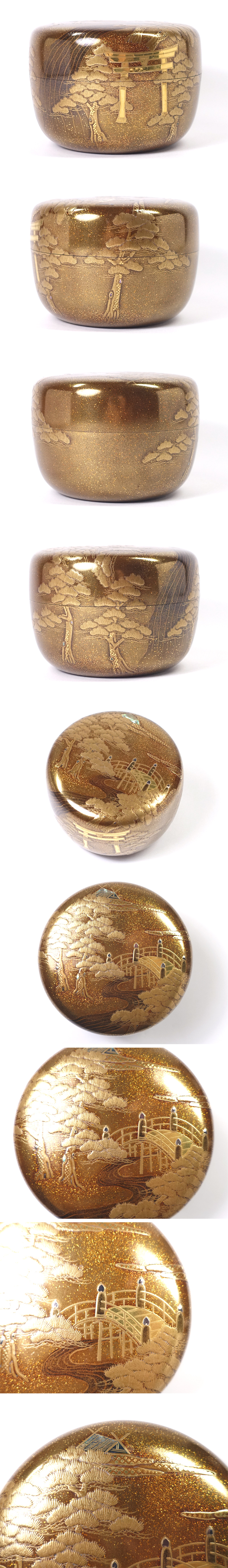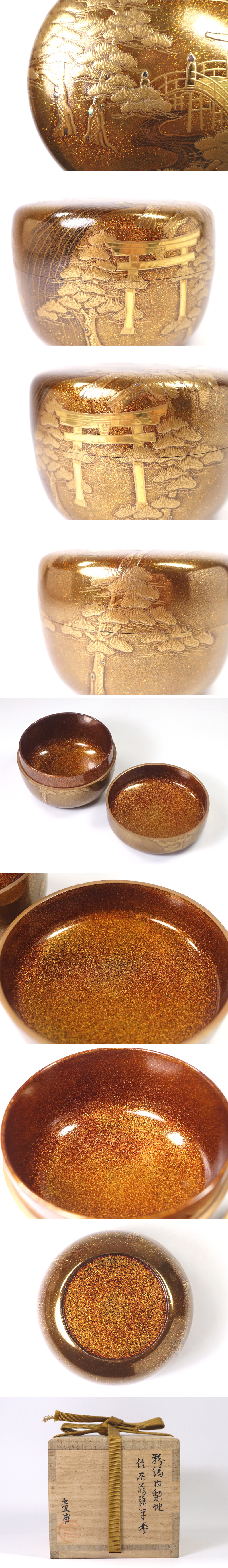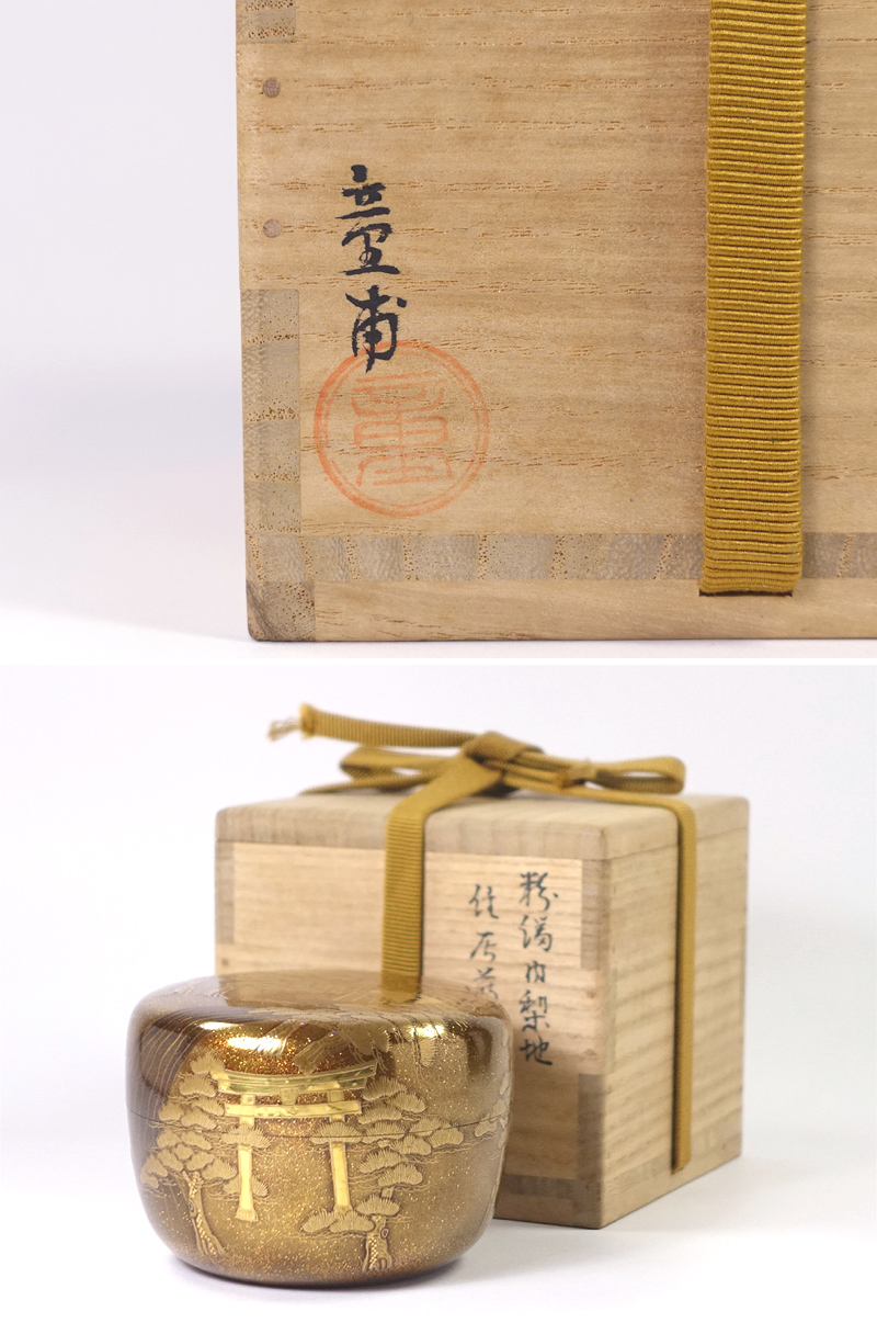 ∇花∇【呉藤童甫(呉藤穣太郎)】作 高雅な加賀蒔絵 粉溜内梨子地住吉蒔絵平棗 共箱付 收藏