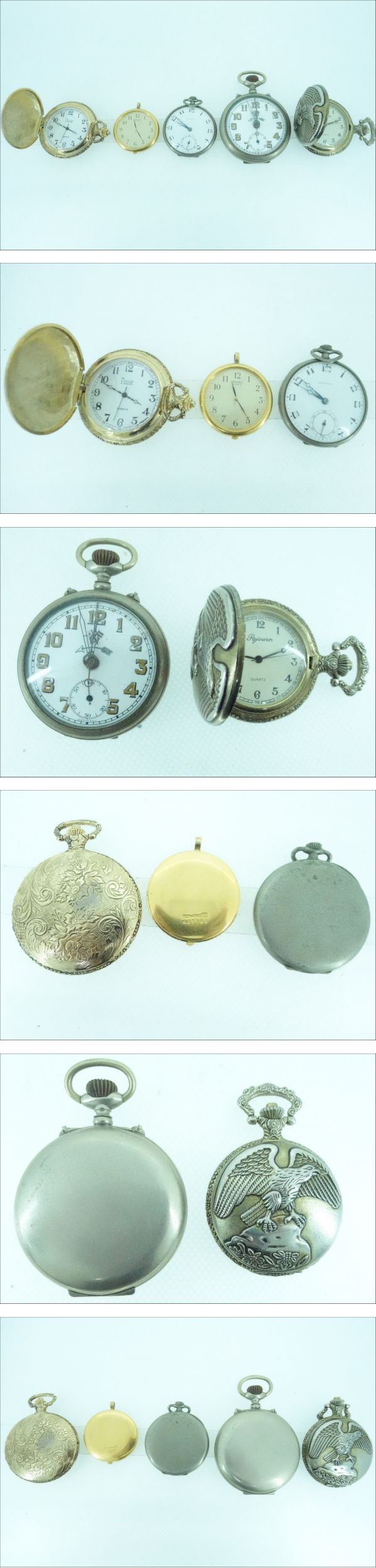 商品名:懐中時計 5点まとめ 付属品:無し 動作:稼働、非稼働の確認は行っておりません。 長時間の動作確認は行っていないため、日差含め正常な動作かは分かりかねます。 ※あくまでも検品時の動作となりますので予めご了承下さい。 状態:譲り受けた商品の為、購入時期や使用頻度など詳細は分かりかねます。 中古品の為、フェイスや外観に傷やスレが見受けられます。 素人の為、ご質問いただいても回答できない場合がございますが、 神経質な方のご入札はお控え下さい。目視での確認となります。 商品の状態に関しては画像にてご判断下さい。 ※オーバーホール歴は不明でございます。 ※裏蓋を外した画像がない商品は、裏蓋を外して内部の確認は出来ておりません。 ID:002025-12287-02 弊社はインボイス登録事業者です。 登録番号:T8370001039877 ※※入札前に必ずお読みください※※ 説明文をよくお読みの上ご入札下さい。 画像に写っているものが全てになります。 商品の重さを量っているものに関しては多少の誤差がありますので、ご理解下さい。 商品の状態に関してはご自身でご判断の上、ご入札下さい。 あくまでも主観に基づく感想です。状態判断は画像にてお願い致します。 商品に対しどちらの情報が欲しいか分かりかねる部分もございますので、落札前にご質問頂ければと思います。 中古品の為、神経質な方のご入札はお控え下さい。 ご入札後の入札取り消しは出来かねます。 専門知識がなく、ご質問いただいても回答できない場合がありますが 気になる点がある方は入札前にご質問下さい。 素人による検品の為、見落としている場合もございます。 ご了承下さい。 ノークレーム・ノーリターンでお願いします。 | |||