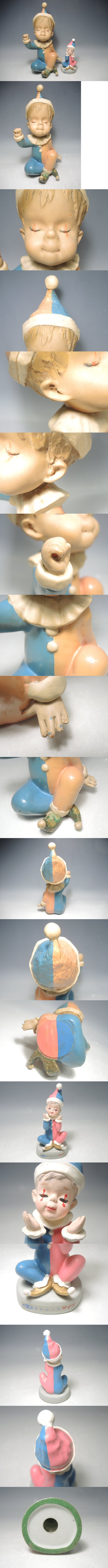102/○福助ストレッチタイツ人形 まとめて2点 ピエロ人形 ソフビ 陶器製 当時物 昭和レトロ 置物 收藏