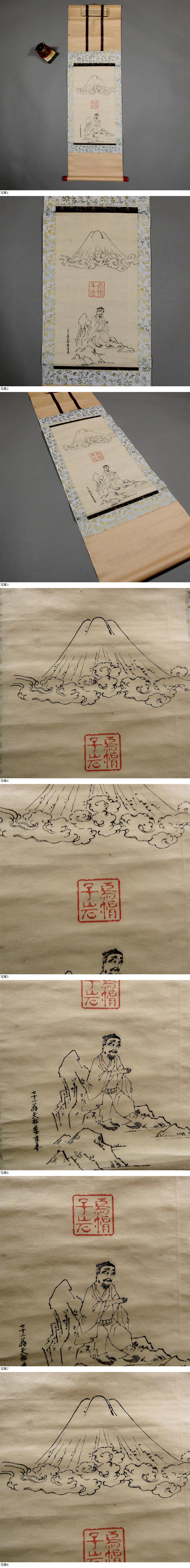 富士講 食行身禄◆古版画 肖像 木版摺り◆富士講聖地「烏帽子岩」の御朱印◆「七十二翁天祐居士謹写」■護符 魔除け 掛軸 古文書 史料 14 收藏