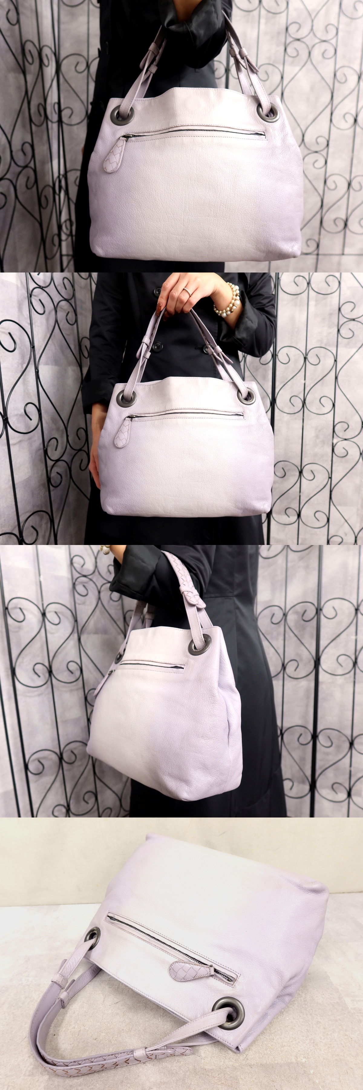 ●美品●BOTTEGA VENETA ボッテガ ヴェネタ●イントレチャート●カーフ レザー 本革●トート バッグ●グレー系●腕掛け●かばん●Js64142 收藏