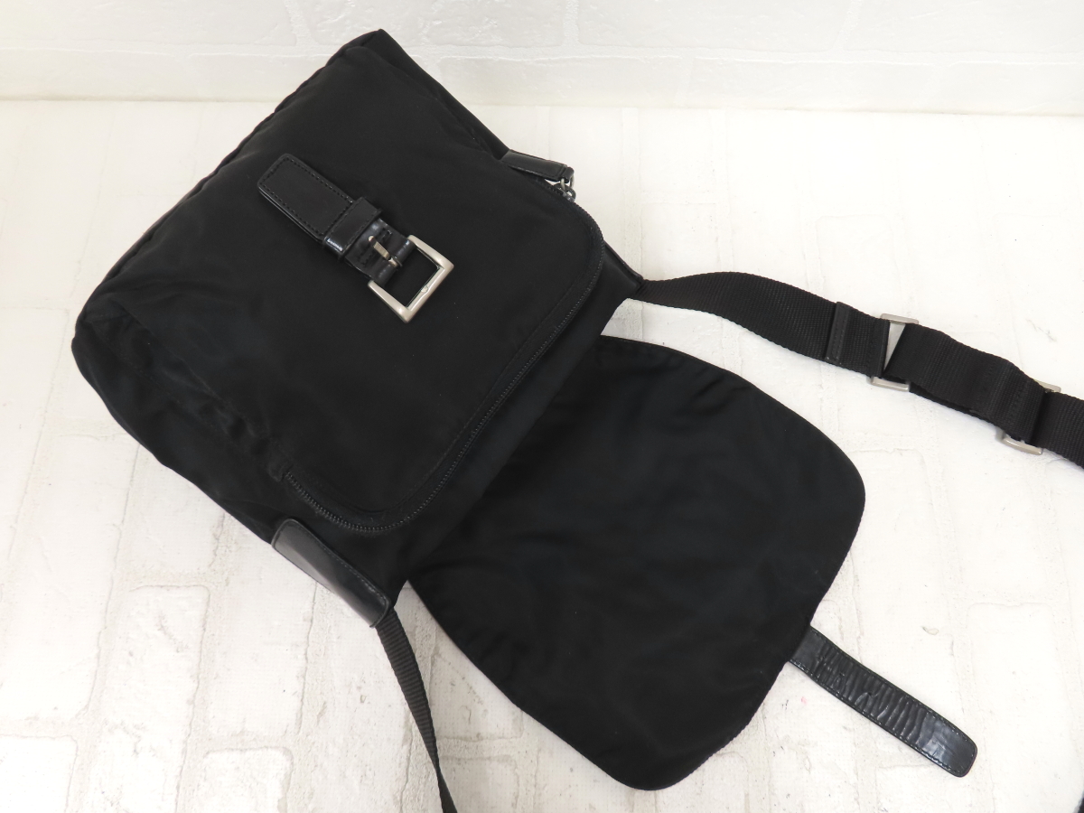 ◆美品◆PRADA プラダ◆ナイロン カーフ レザー 本革◆ショルダー バッグ◆ブラック シルバー金具◆イタリア製◆斜め掛け◆A15078 收藏