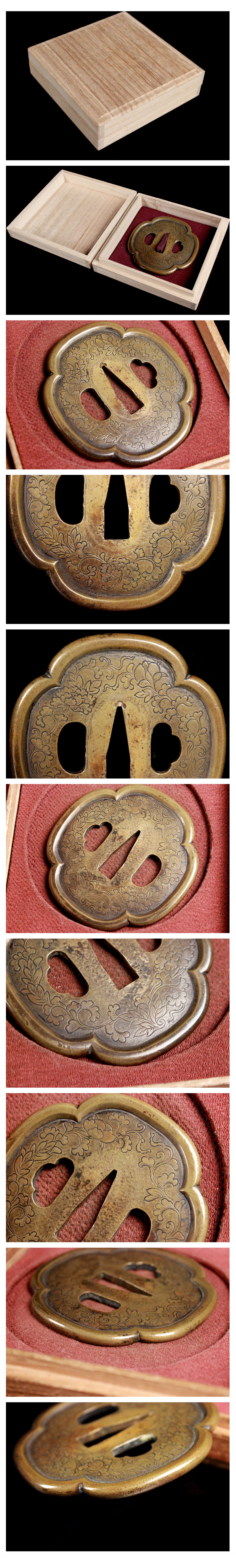 | 【喜楽】花毛彫り 土手耳 木瓜鍔!! 肉厚 刀装具武具!! 木箱 112214 | - |