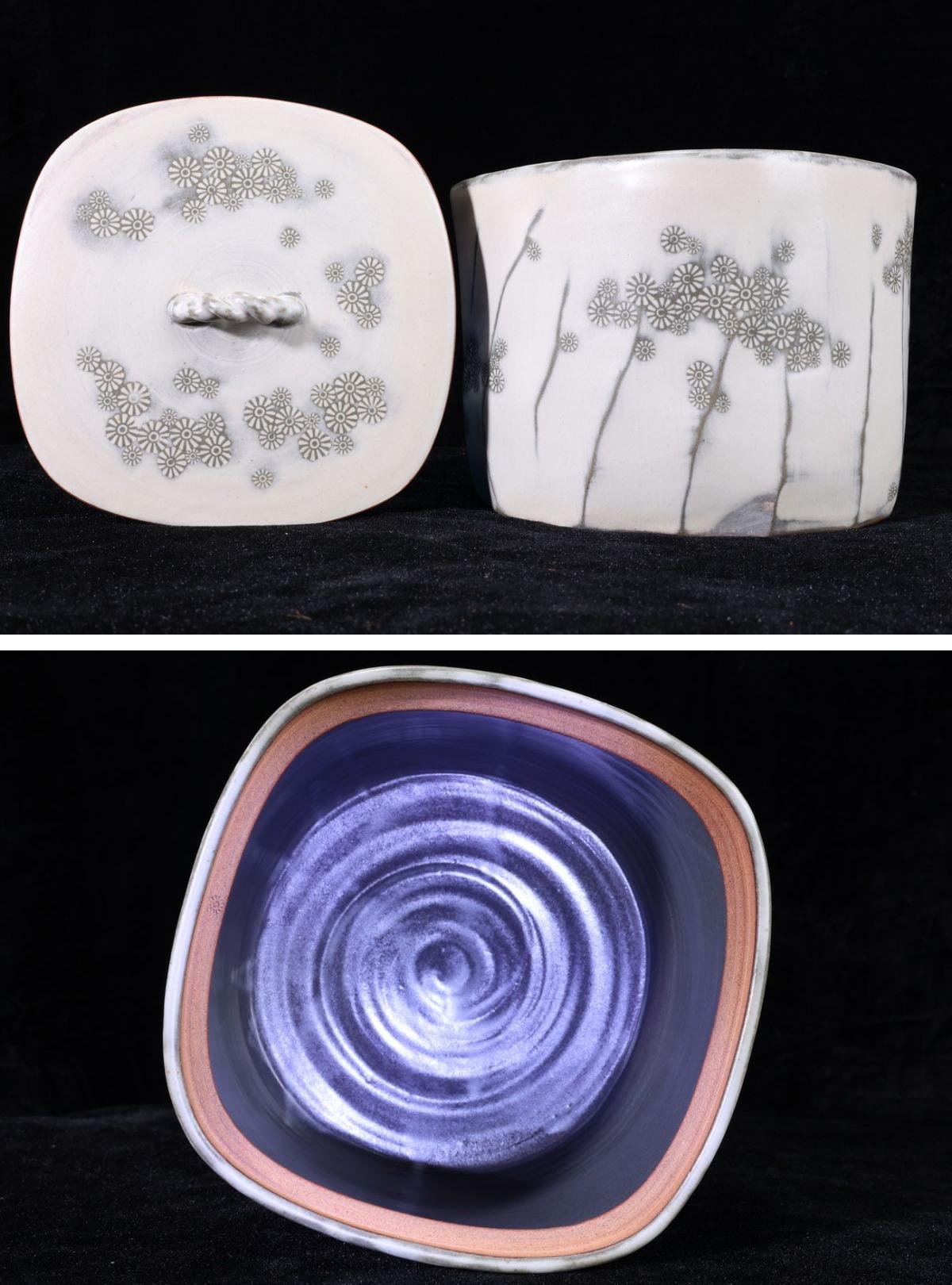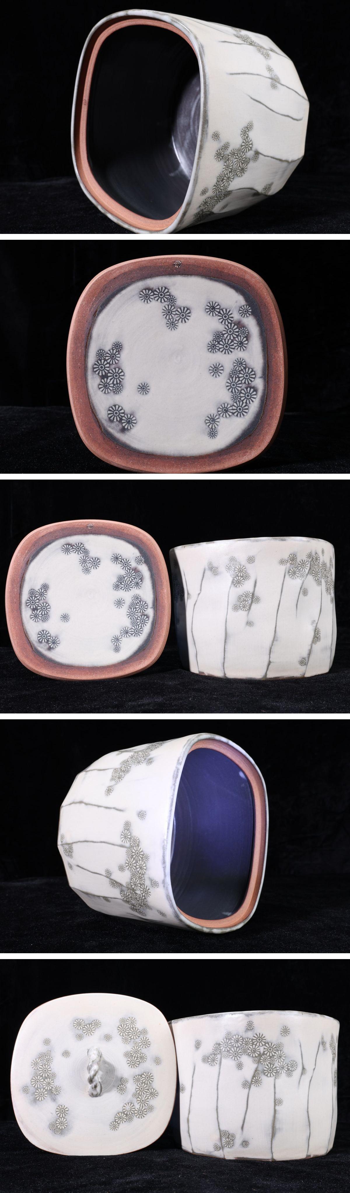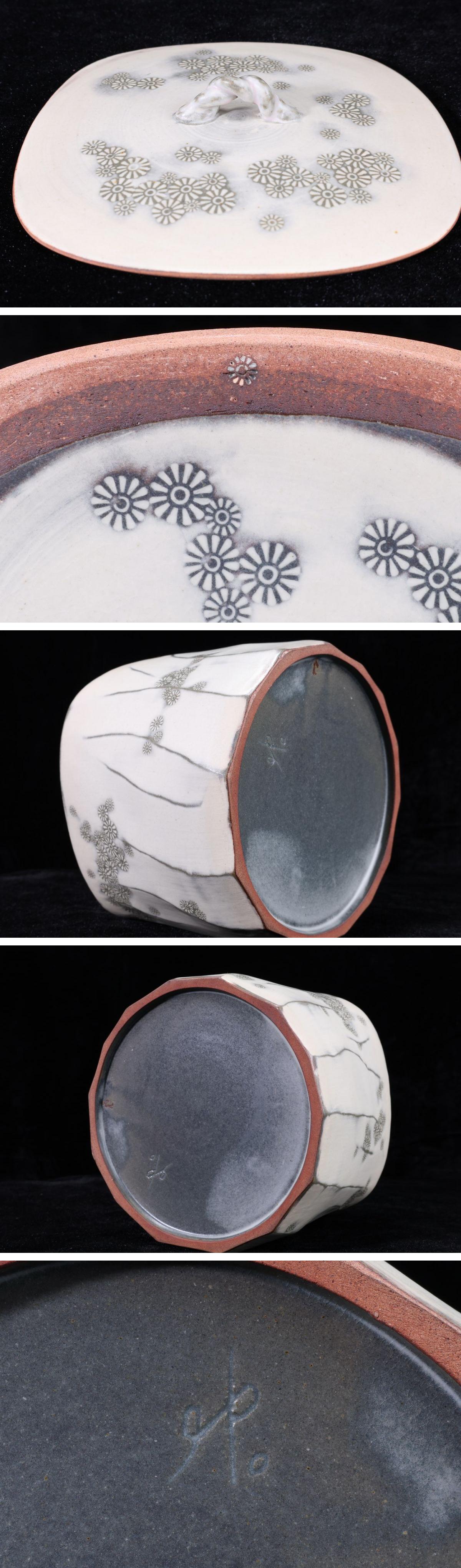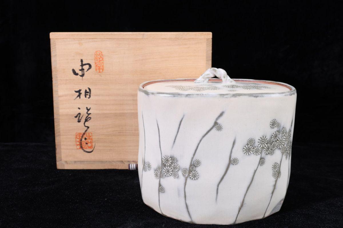 【珍品堂】1円から 申相浩 人間国宝 水指 水差し 花彫刻 共箱 茶道具 煎茶道具 時代物 古美術 骨董品 AC38H-J 收藏