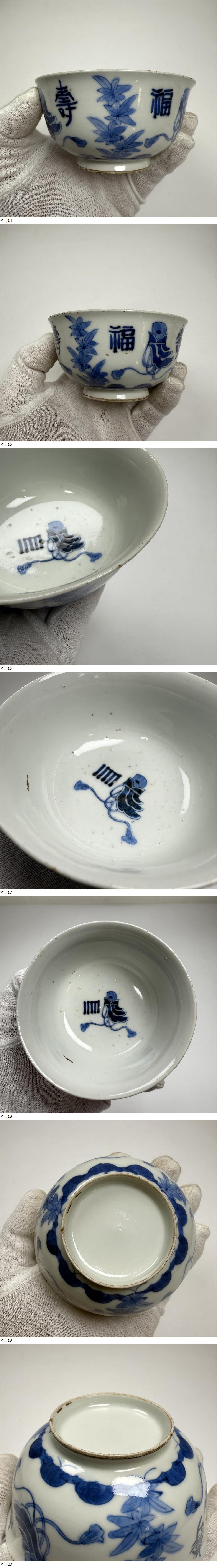 中国古美術 時代物 染付 茶碗 茶道具 煎茶道具 福寿図 在銘 唐物 陶磁器 中国古玩 骨董品 古董 傷あり 收藏