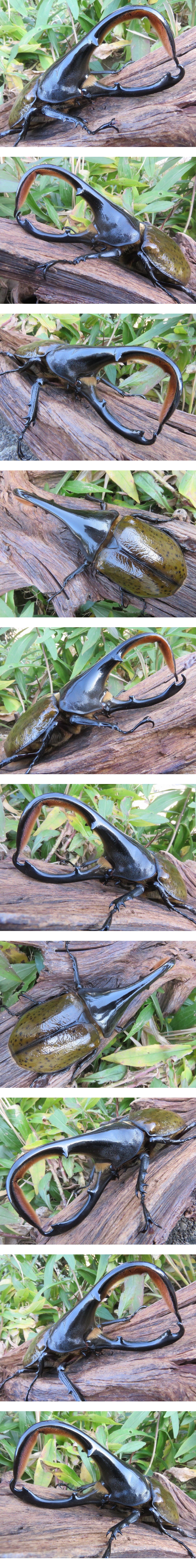 ※ 計測方法は、虫を平らな所に置き、ノギスにて計測し、胸角~上翅末端までの最大値約118mm、お尻までの最大値約120mm