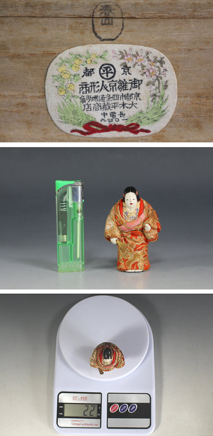 名川春山(作) 京都 御雛京人形商 大木平蔵商店販売 「熊野」 戦前人形 共箱 京都丸平 箱表に「春山」の丸印 蓋の割り印に「春山」の印 收藏