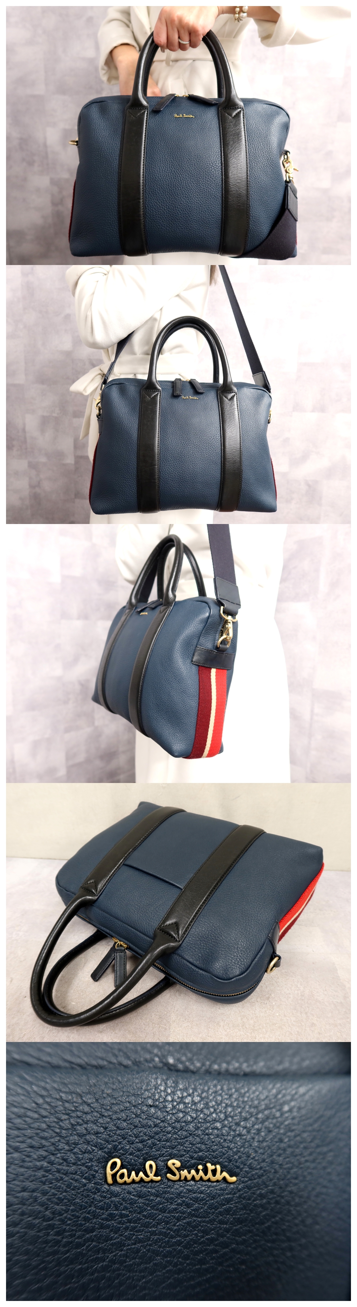 超美品●Paul smith ポール・スミス●メンズ●ロゴ金具●カーフ レザー 本革●2way トート バッグ●ネイビー●G金具●B5 ビジネス●Js64492 收藏