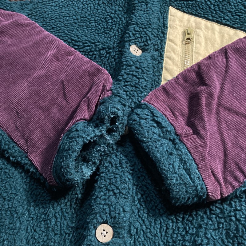 PHATEE★NASTA JK★希少★クレイジー切替 ボアフリース ジャケット コーデュロイ 隠しポケット&ドローコード 緑 M ファッティー アウトドア 收藏
