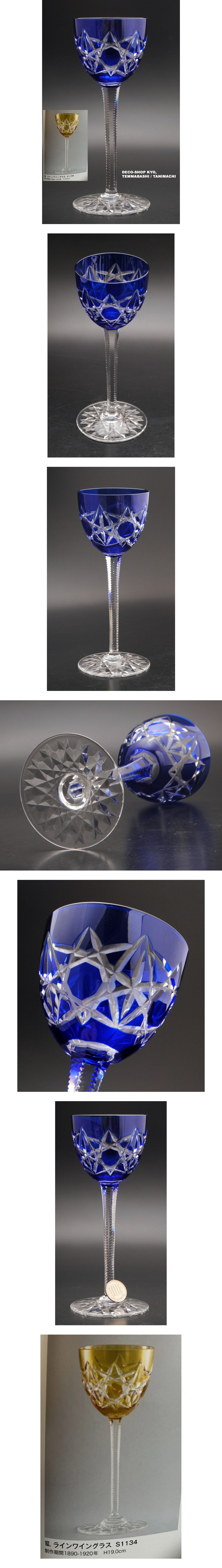 フランスクリスタル製作の最高峰であるバカラの、約1890-1910年代のアールヌーヴォー期に最高級シリーズとして製作された現存するのは誠に貴重な、目を見張る高品質な被せ色クリスタルに細密なカット装飾が施された圧巻の大型レーマーグラス(ラインワイングラス)作品群の一つである、モデルS1134です。