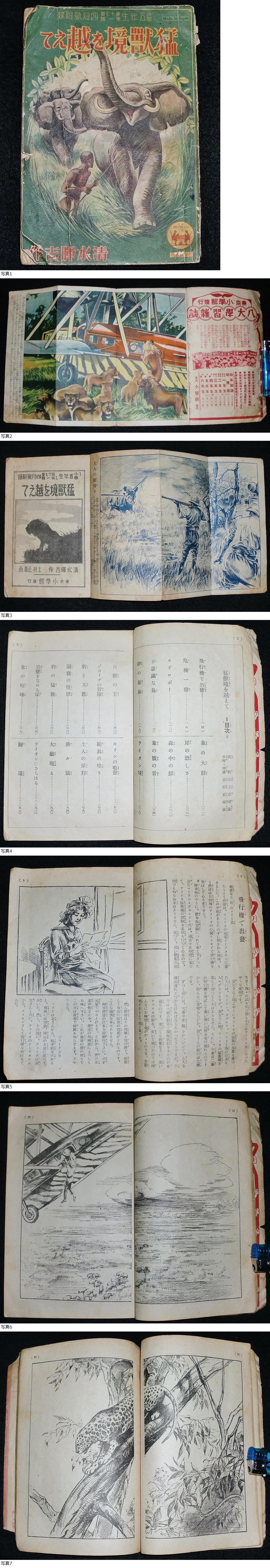 | ☆蔵出し 昭和12年4月発行//小学館 小学5年生 附録『猛獣境を超えて//清水暉吉 作/土村正壽 画』冊子 絵本//昭和初期 当時物 貴重資料☆ |