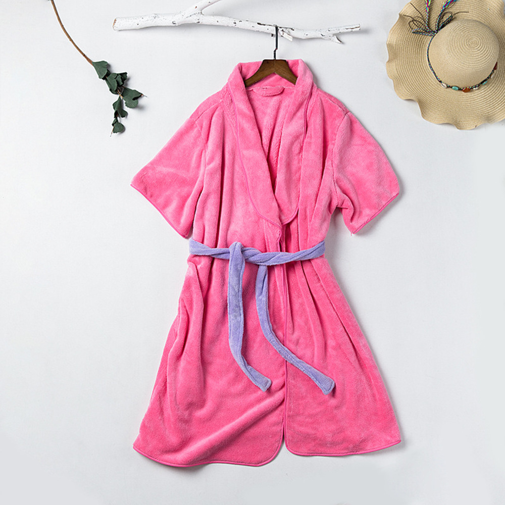 ☆ ローズピンク ☆ バスローブ 吸水マイクロファイバー ルームウェア バスローブ 半袖 マイクロファイバー ナイトウェア ルームウェア 收藏
