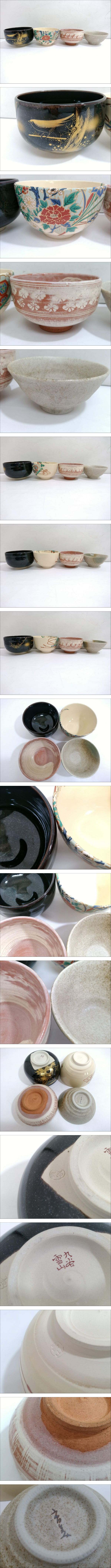 【うぶだし】九谷焼 九谷雪山 造 他 抹茶茶碗 合計4点セット/京焼 昌山 造/三島手/抹茶碗/花鳥文/茶器/茶碗/茶道具/金彩色絵/LHK15 收藏