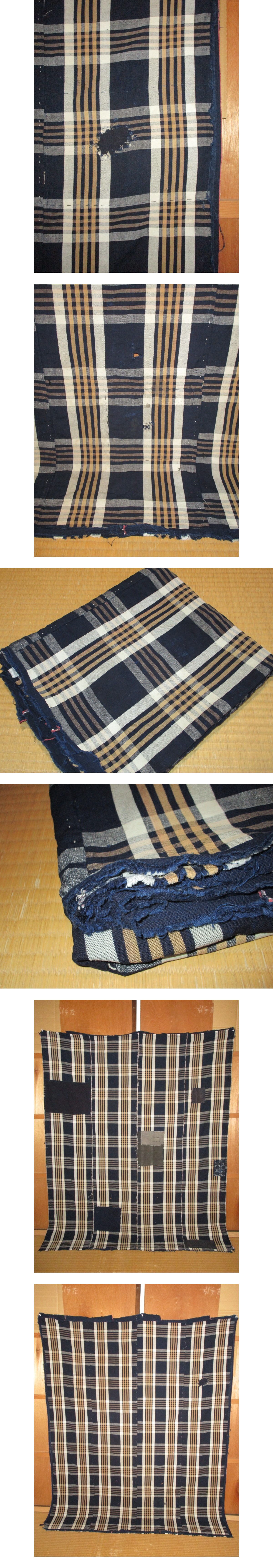 【昔古布】大正期頃 厚手 藍染木綿 襤褸BORO 4幅 (長160) ●継ぎ接ぎ・刺子・ボロ布・インディゴ● 收藏