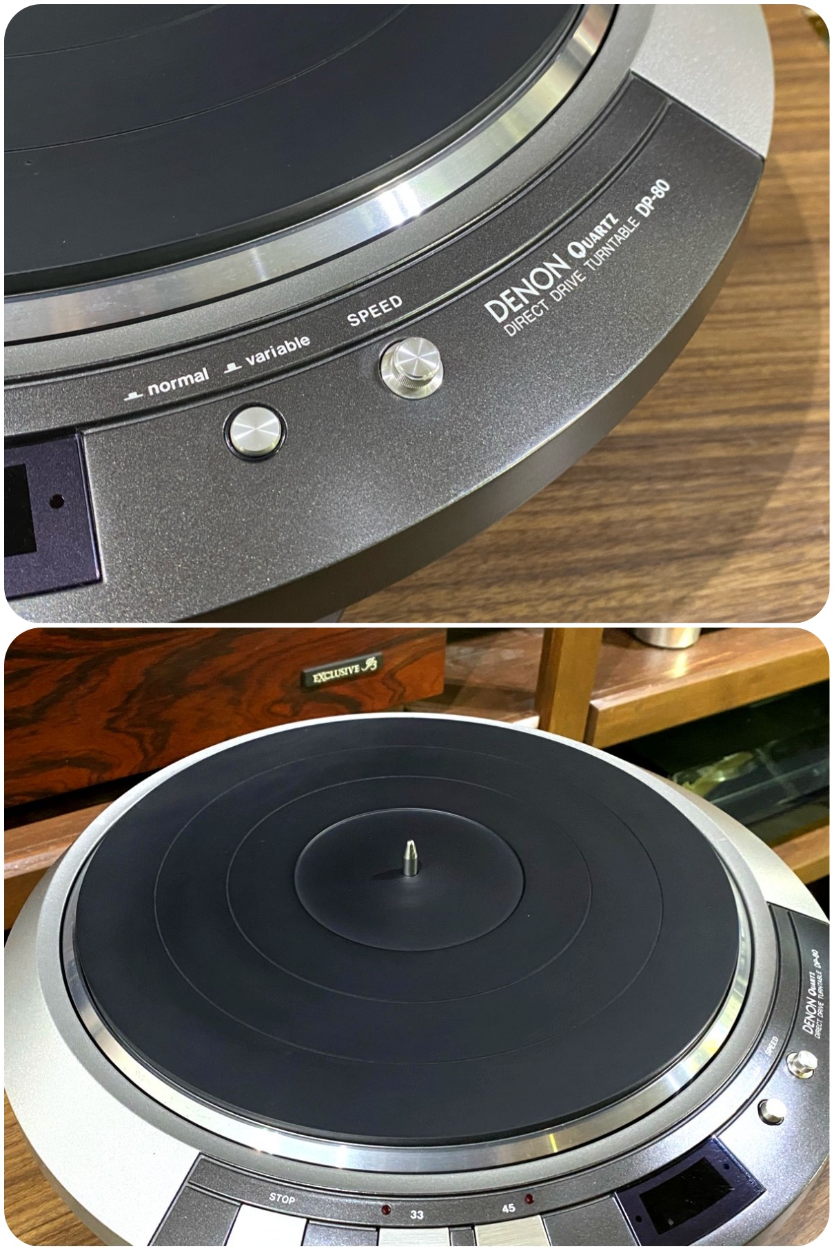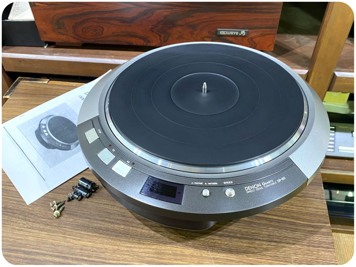 DENON DP-80 ターンテーブル ユニット 輸送ネジ/取説付属 当社メンテ/調整済品 水晶発振器による両方向性フェーズロックドサーボ方式や3相ACアウターローター形サーボモーターにより
