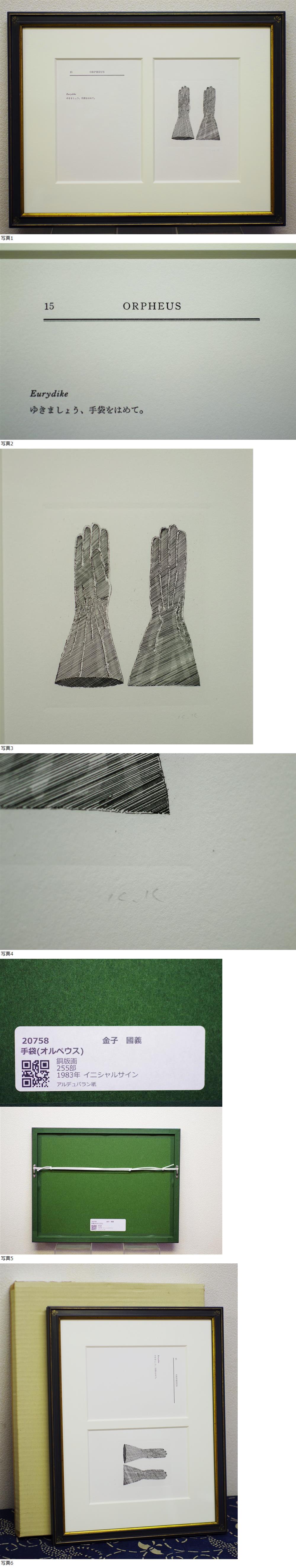 ☆★入札の取消し・落札後のキャンセルは 一切出来ません。 良くご確認の上入札して下さい。★☆ ☆★落札後2日以内のご連絡と、5日以内の ご決済をお願い致します。★☆ ☆★商品を受け取りましたら必ず《受取連絡》の クリックをお願い致します。★☆ クリックをして頂けない場合は、 以後の入札をお断りいたします。 ☆★《悪い》の評価が二桁ある方につきましては 予告なく入札制限と入札の取り消しをさせて 頂く場合がありますのでご容赦ください。 ☆★商品を確実にお届けするため、取引ナビにて 電話番号の記載をお願いいたします。★☆ ☆★再配達を避けるため、配達日・時間帯指定の ご協力をお願い致します。★☆ ☆★領収書の発行可能ですが、必ず取引ナビの 最初にご連絡ください。 インボイスには対応しておりません。 商品発送後の発行に関しましては、 切手代110円を申し受けます。 いつもアクセス頂きまして誠にありがとうございます。 すべて最低落札価格無し! 100円スタートと致しますので奮って入札して下さい。 この銅版画は金子國義の作品で、 タイトルは『オルペウス~15.手袋』です。 壁面を小粋に演出してくれる素敵な作品です! 是非コレクションの一枚に加えて下さい! ☆★同時出品の金子國義作品同梱可能です。★☆ ☆★☆当店の出品ポリシーについて☆★☆ 当店出品の作品につきましては、美術年鑑での 評価額などにとらわれず、極力描きこみの良い物・ 埋もれさせたく無い現存・物故作家を中心に 出品しております。 (勿論、人気作家の出品もあります) また、作品は直ぐに飾って頂けるようガラスを外して 裏表を綺麗に拭き上げる(構造的に外せない物は表面のみ) のは勿論の事、外枠のクリーンナップや金具・ 吊りヒモの補修・交換などを施した後、 しっかりと梱包の上発送しております。 最近は赤字での落札も沢山ありますが、 これからも落札者の立場に立った出品を心がけてまいり ますので、ご愛顧のほどよろしくお願い申し上げます。 他の入札者のご迷惑となりますので、一円単位でのご入札、 入札後のキャンセルはご遠慮願います。 ☆★☆出品作品は全て真筆・真作保証いたします。☆★☆ 万が一贋作の場合、落札代金+送料をご返金 させて頂きます。 落札後、異議申し立てされる場合、物故作家の場合は、 公的または所定鑑定機関発行の鑑定書・証明書、 あるいは作家のご遺族による所見を記した 署名・捺印・日付のある書面をご提出いただきます。 現存作家の場合、作家自身の署名・捺印・日付のある 書面を御用意の上申し立て下さい。 異議申し立ては、落札後一か月以内とさせて頂きます。 ★☆なお、鑑定にかかる交通費や鑑定料などの 費用につきましては、お客様のご負担となります。☆★ 作品欄/額縁欄の☆印について 1/2は☆半分です ☆☆☆☆☆ 新作及び描きおろし/新品額装 ☆☆☆☆ 新品同様品/微かな擦れがある新品同様額 ☆☆☆ 汚れ・傷みの無い美品/若干の擦れのある額縁 |