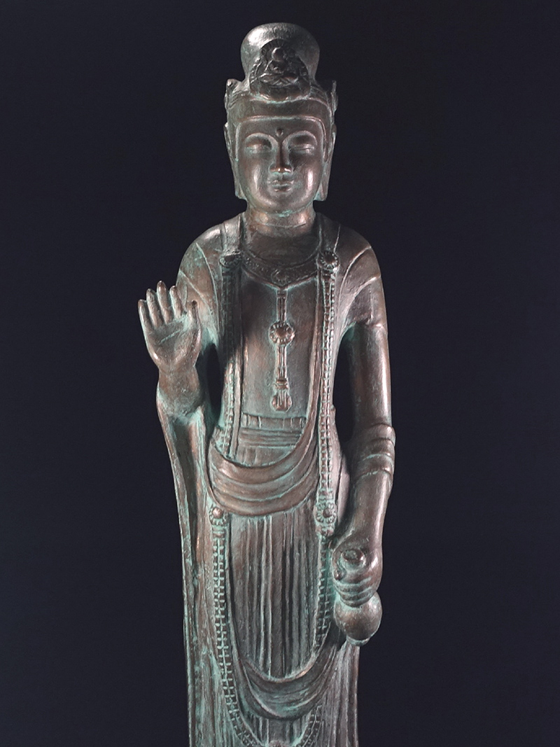 ∇花∇二紀会副理事長【矢形勇】作 ブロンズ彫刻観世音菩薩立像 高さ58cm 勇在銘 收藏
