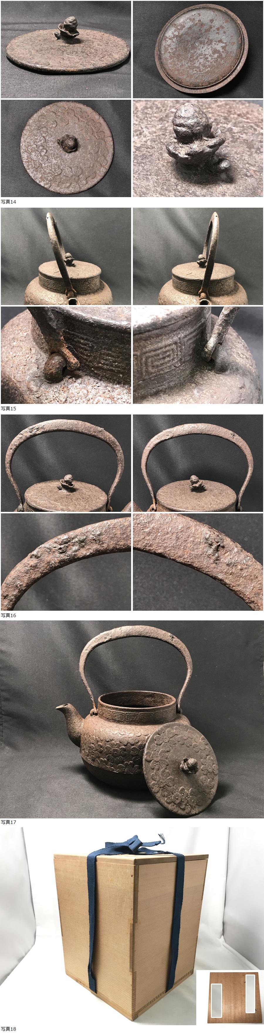 ◆南部鉄器 鉄瓶 銘有り 詳細不明 約2.2kg 菊柄 湯釜 鉄器 南部鉄瓶 茶道具 煎茶道具 水漏れなし 錆あり 別箱付 收藏