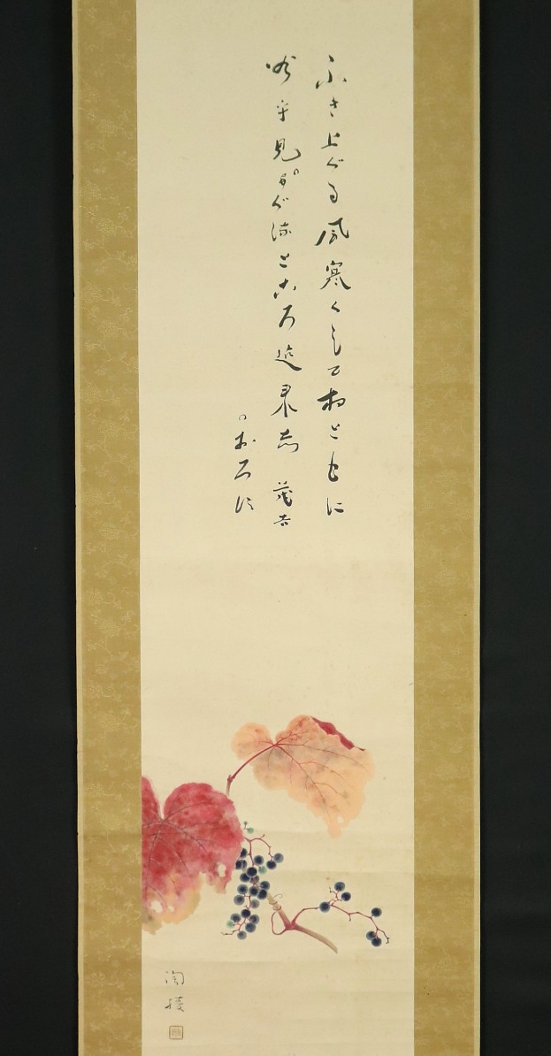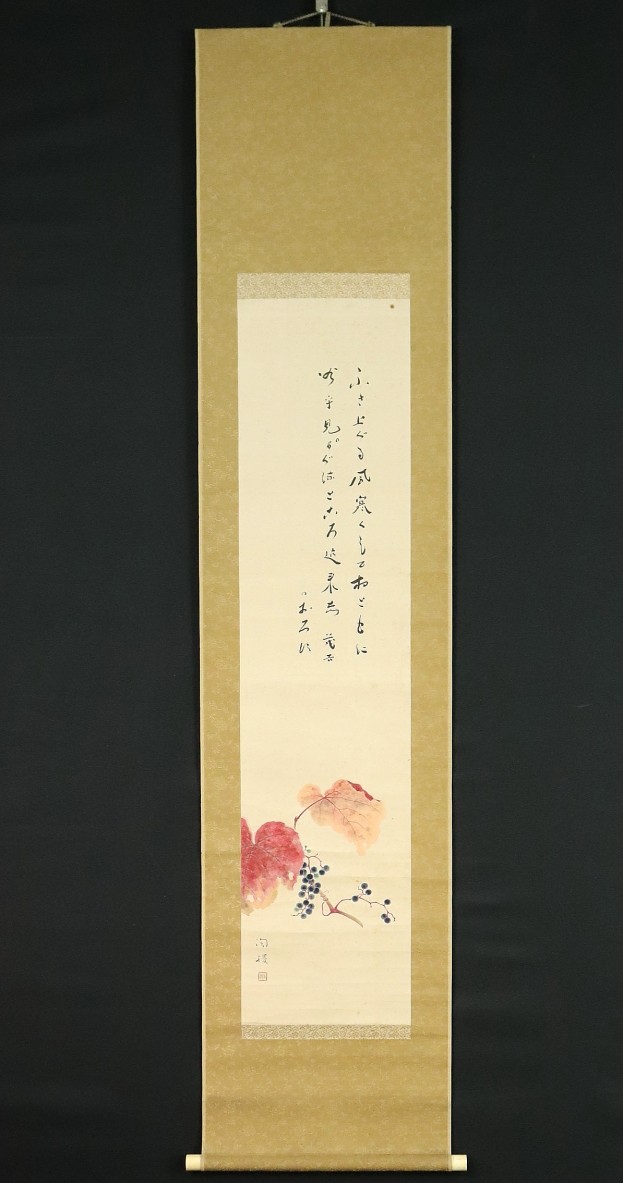 12702■【真作】斎藤茂吉賛 加藤淘綾画 葡萄画賛 肉筆 共箱 日本の歌人 精神科医 伊藤左千夫門下 信州に所縁 掛軸