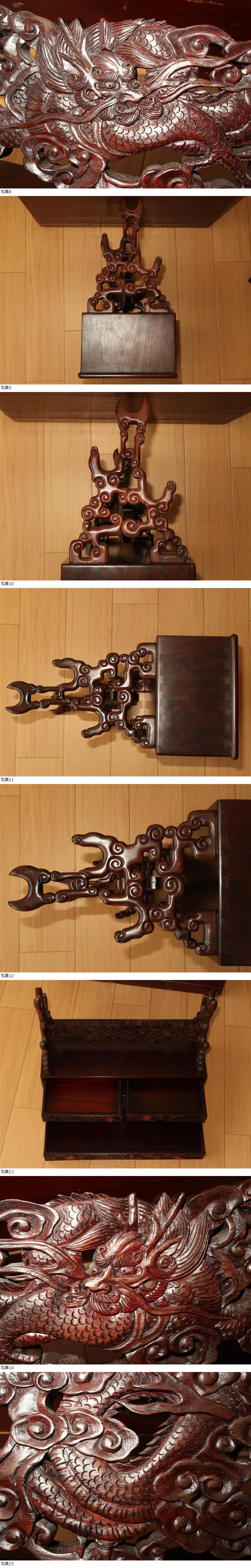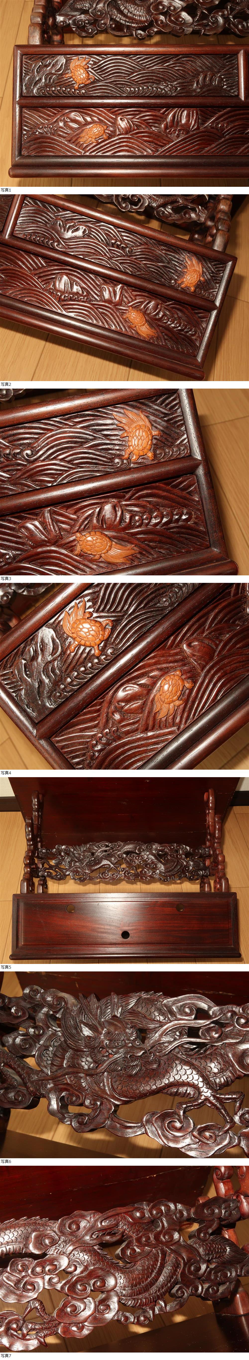 龍姿図透彫.亀図細工.引き出し付.三本.刀掛け.迫力あります.木製.友箱.拵刀剣刀装具武具甲冑居合刀.売切り 收藏