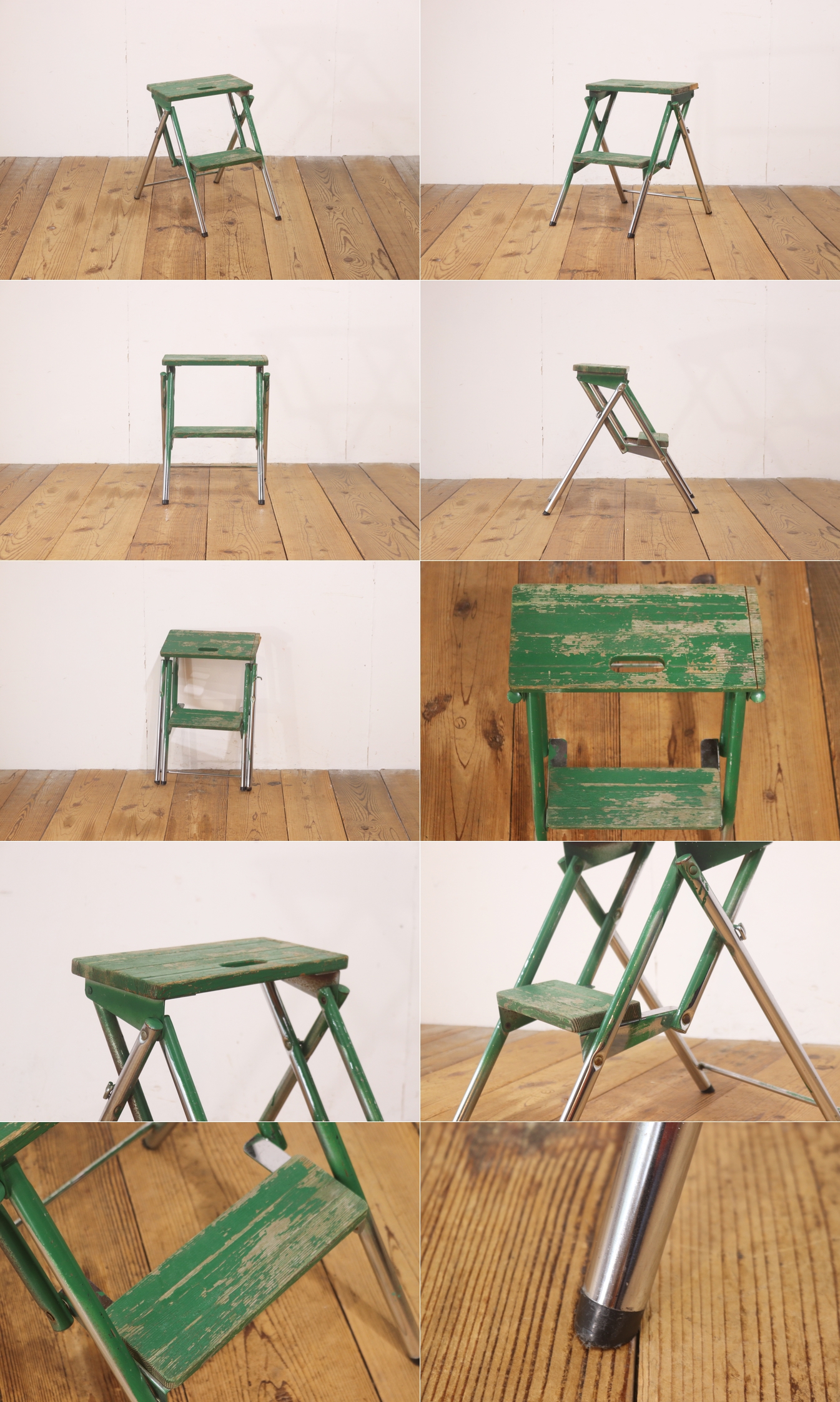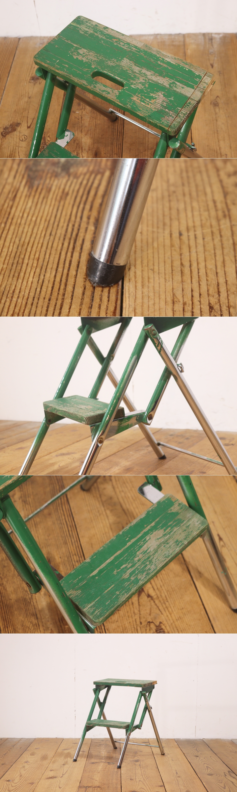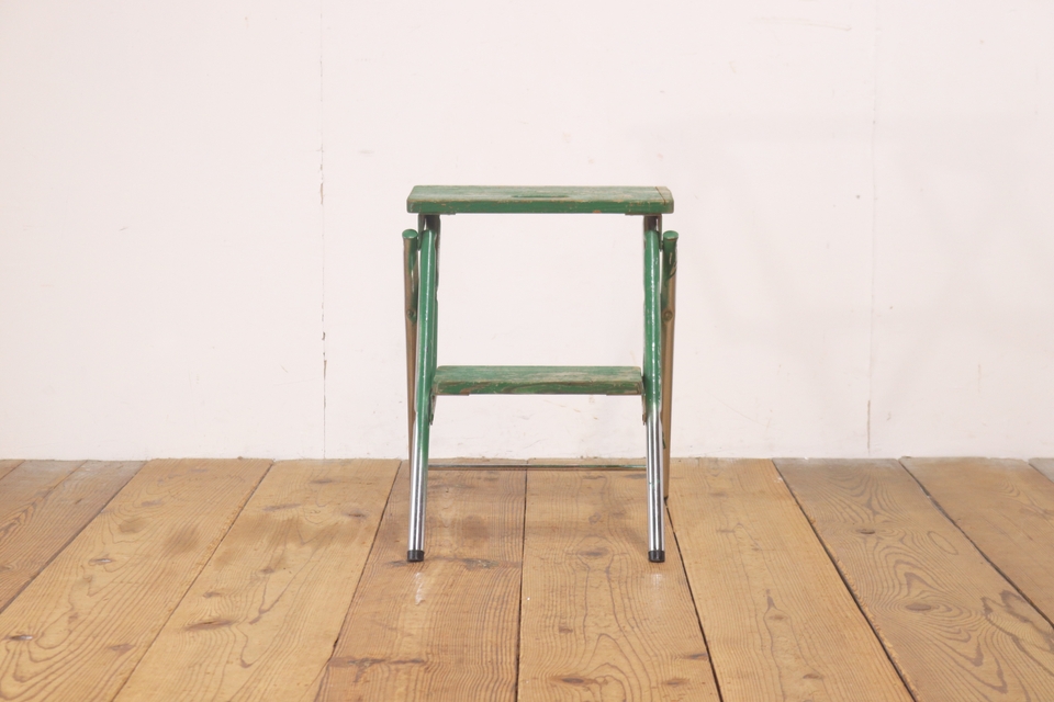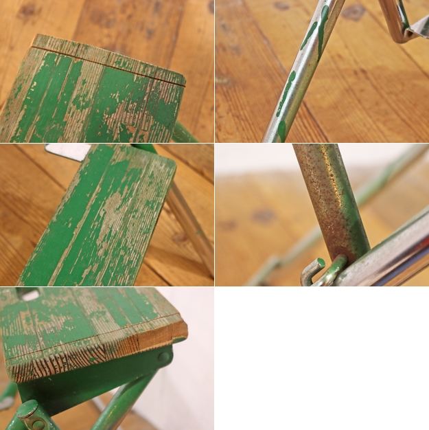 ヴィンテージ ステップラダー 脚立 折り畳み ガーデニング 飾り台 ディスプレイ 古道具 リペイント 緑 レトロ/アンティーク梯子/RBT21213 收藏