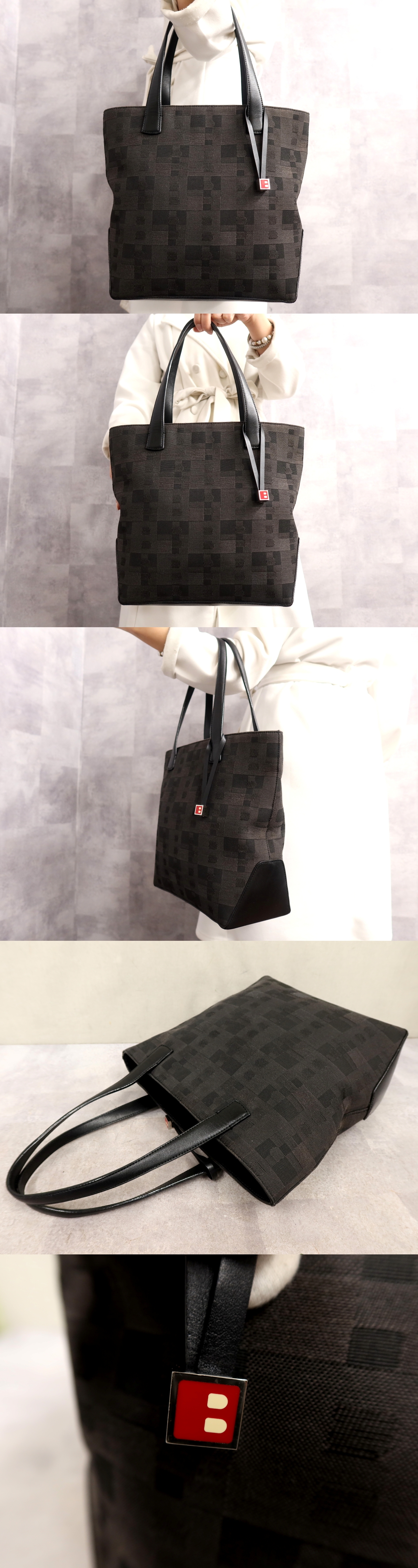 超美品●BALLY バリー●ビジーB●Bロゴ総柄●キャンバス カーフ レザー 本革●トート バッグ●黒 ダークブラウン●腕掛け●かばん●Js66165 收藏