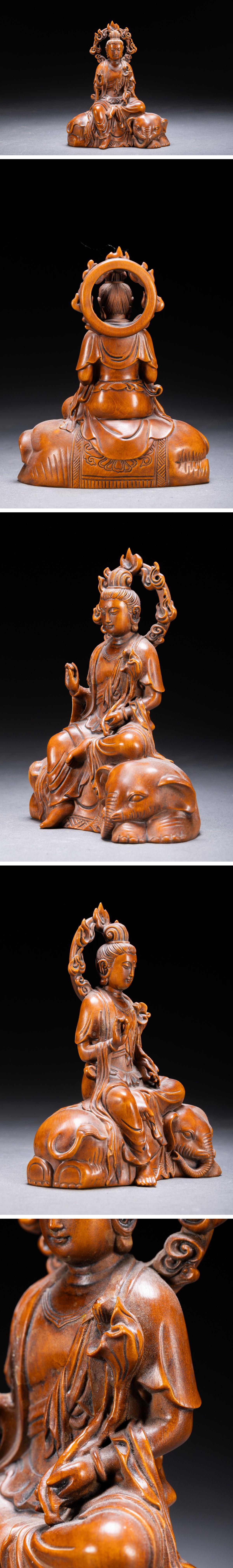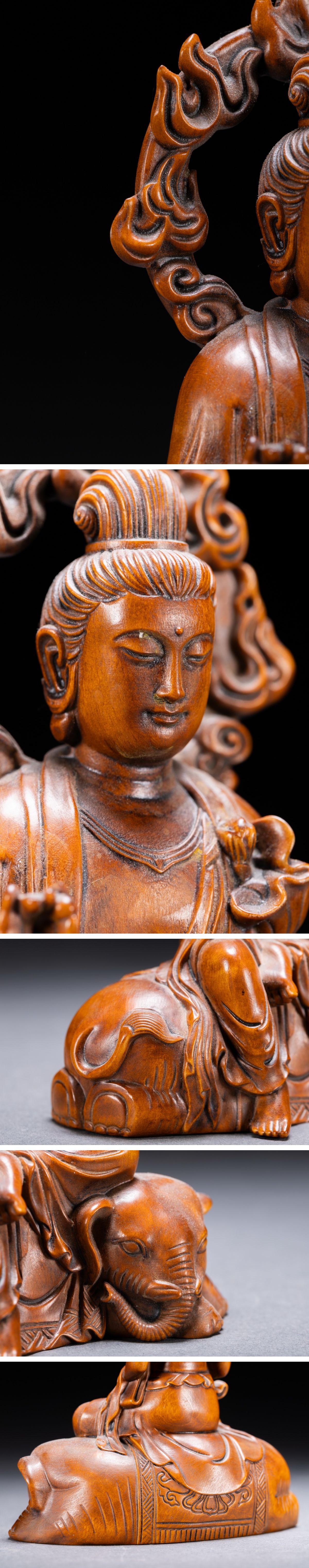 【清】某有名収集家買取品 時代物 中国伝来 黄楊木 菩薩造像 当時物 時代コレクション8L1-78S 收藏
