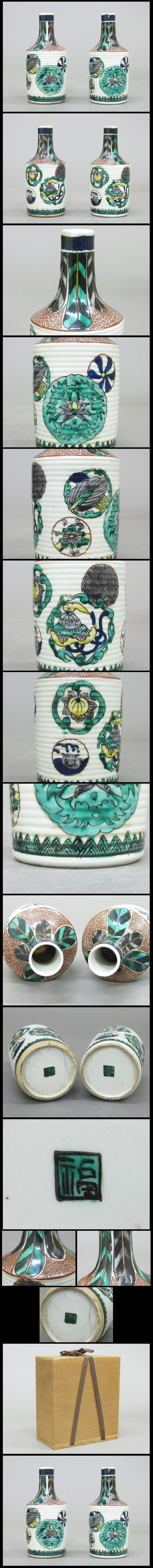 【心庵】時代物 九谷焼 青手 青九谷 花兜兎文/徳利 一対 角福 付箱 B846 收藏