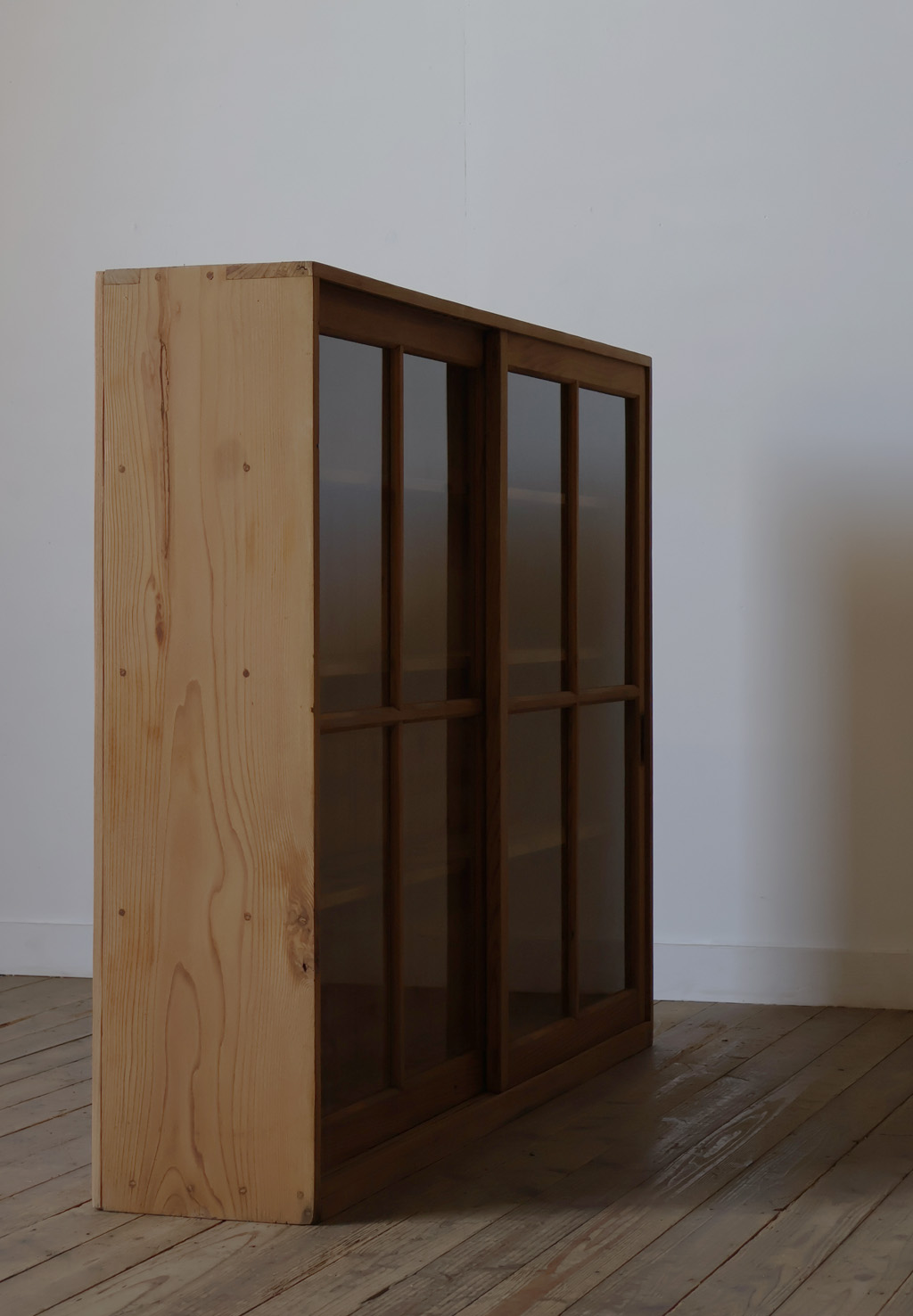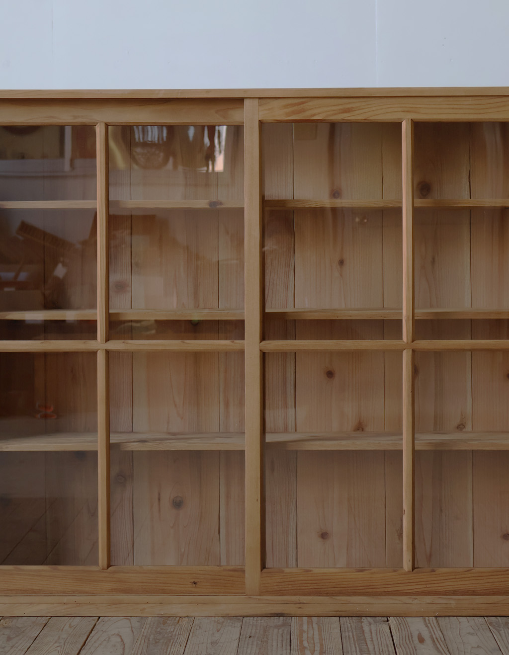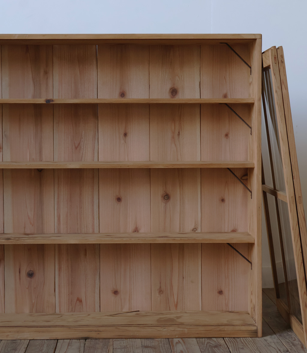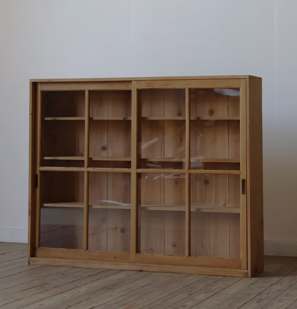 【薄型◆古い十字ガラス戸棚◆食器棚】アンティーク店舗ギャラリーカフェ什器飾り棚本棚陳列棚収納棚展示台ガラスケースキャビネット机椅子 收藏