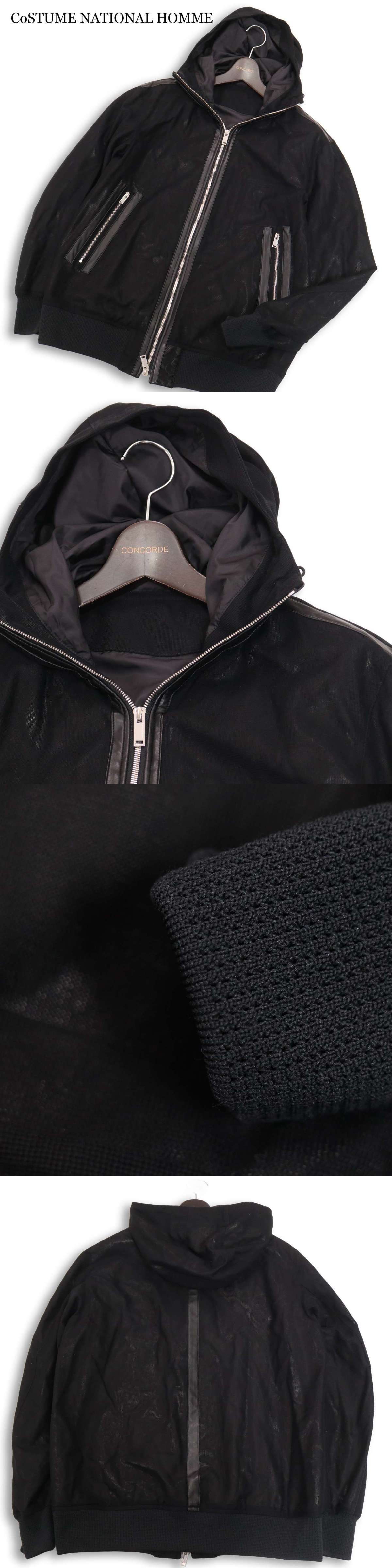CoSTUME NATIONAL HOMME コスチュームナショナル オム 通年★ Fレザー切替 フーディー ブルゾン ジャケット Sz.46 メンズ 黒 收藏