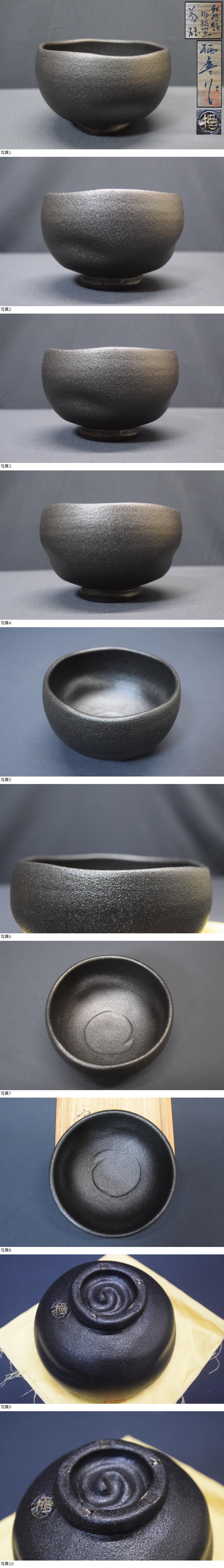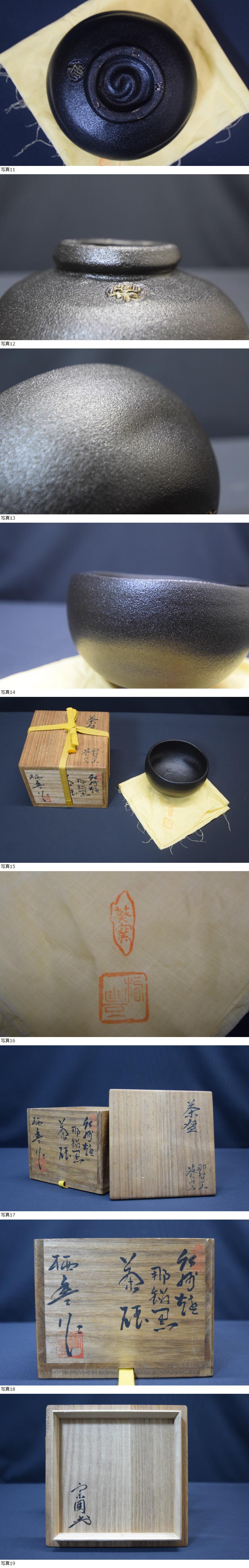 | 紀州焼 葵窯 「寒川栖豊」作 那智黒茶碗 宗囲 花押 共箱 共布 |