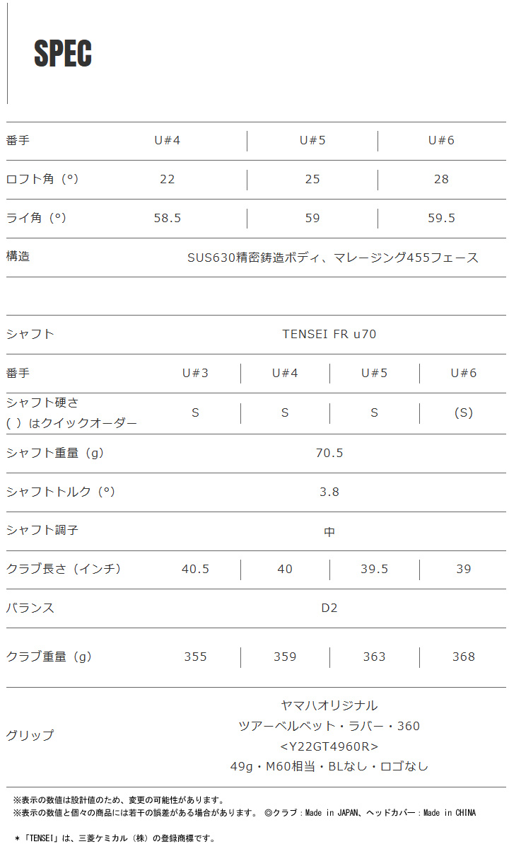 ヤマハ RMX DD ユーティリティ【U5(25°)/S】シャフト:TENSEI FR u70 YAMAHA リミックス UTILITY 日本正規品 2026 40p 即納 收藏