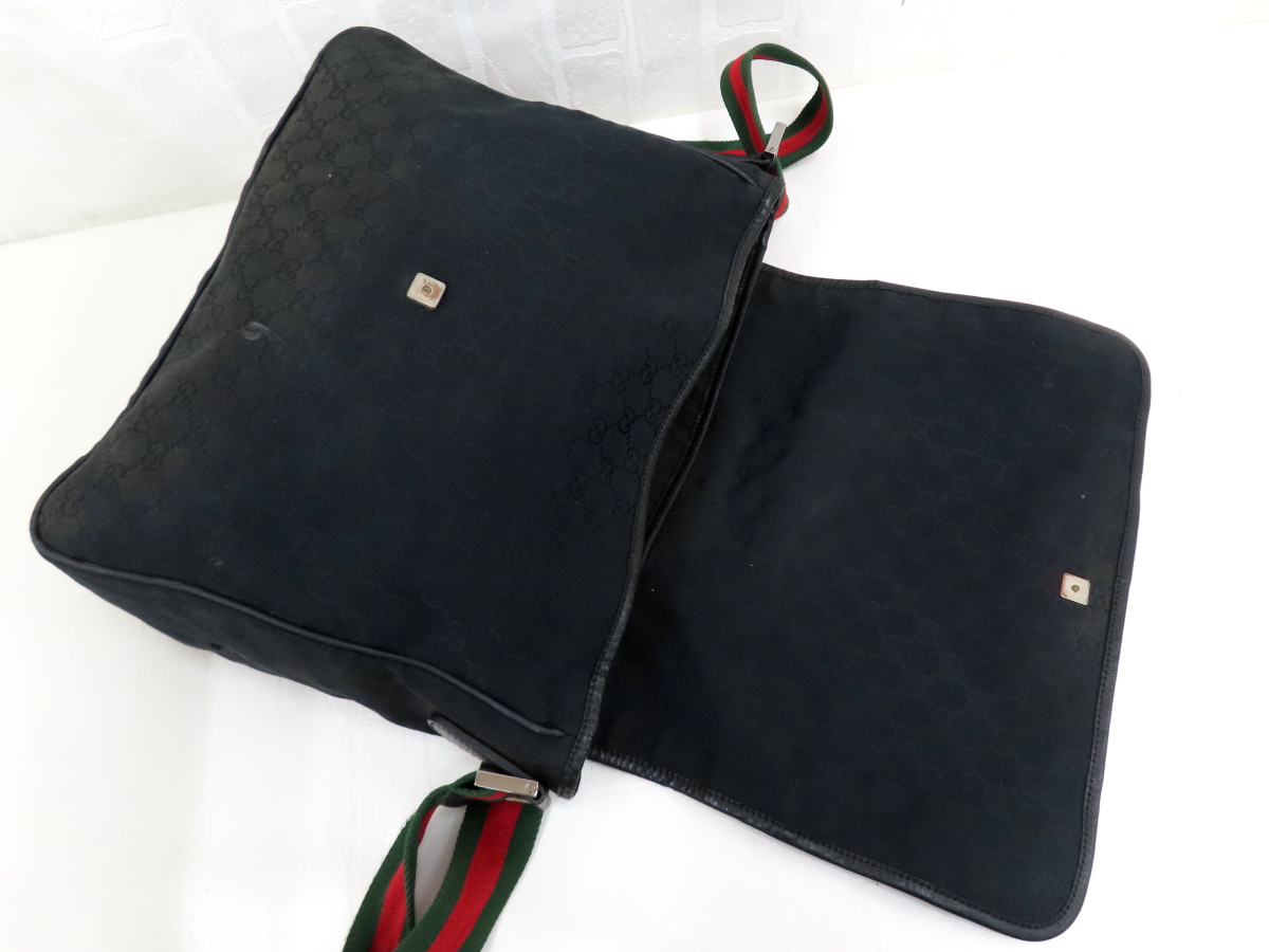 ◆GUCCI グッチ◆シェリー◆GGキャンバス カーフ レザー 本革◆ショルダー バッグ◆ブラック シルバー金具◆イタリア製◆フラップ◆A16698 收藏