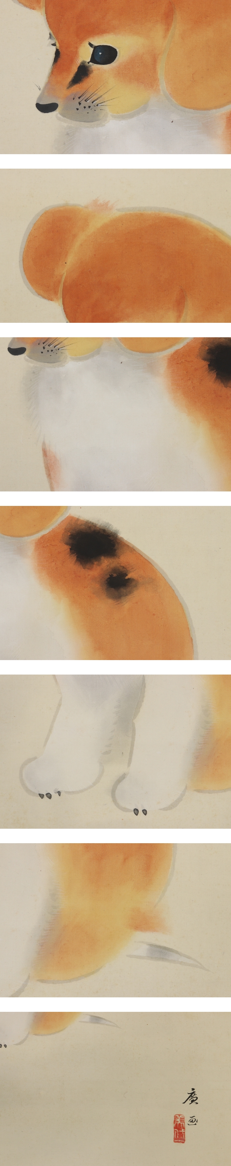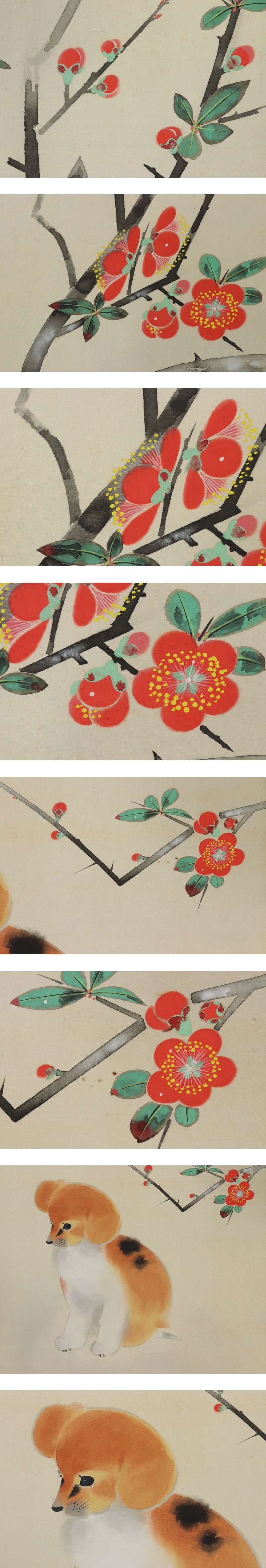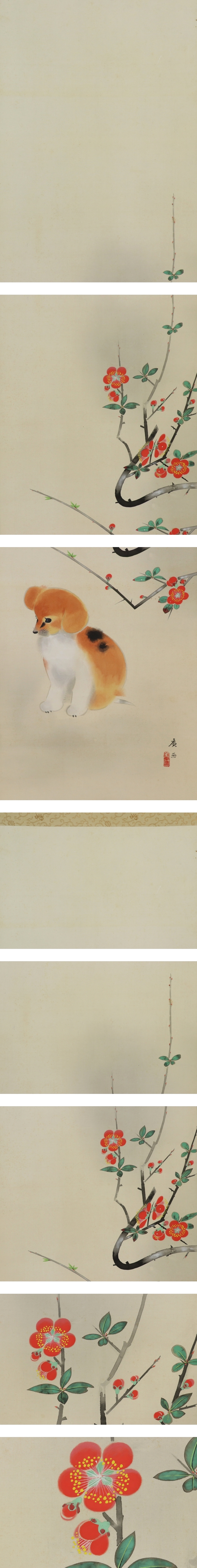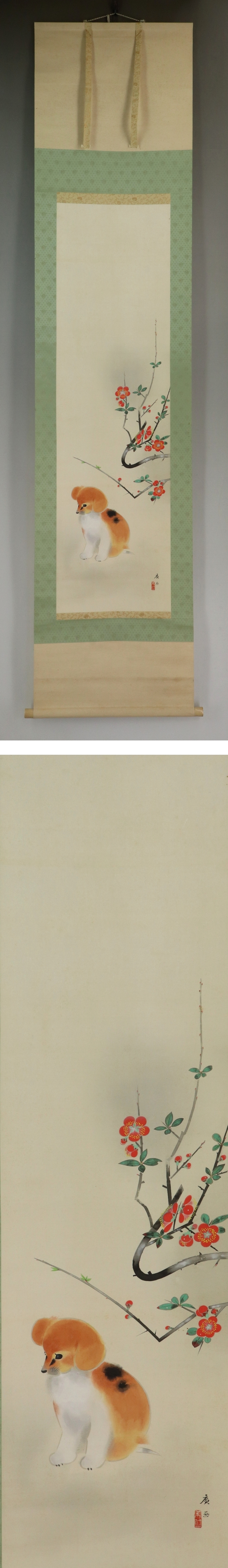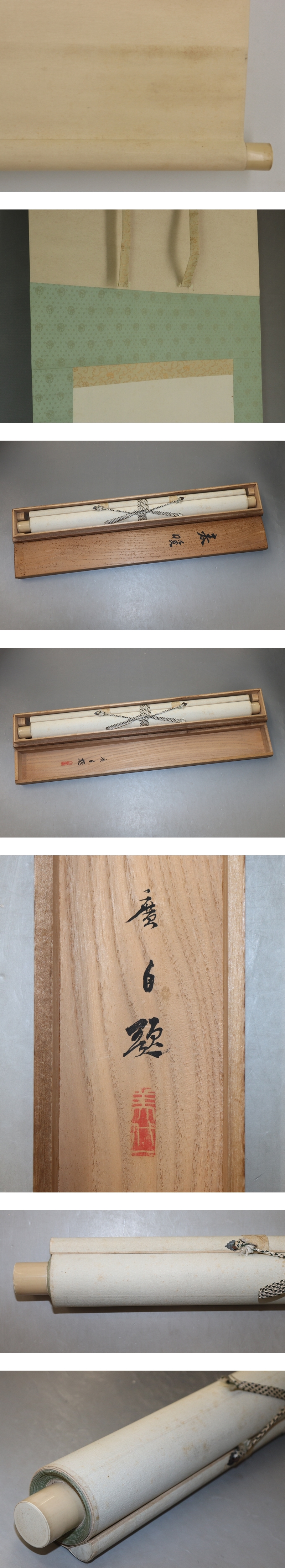 田中廣【春暖】 本紙は、染み、軽い折れ、軽いヤケがあります。 表装は、染み、汚れ、軽い折れ、皺、くすみ、軸先に汚れがあります。 【サイズ】 作品 横約35cm×縦約125.5cm 表装 横約49cm×縦約213cm |