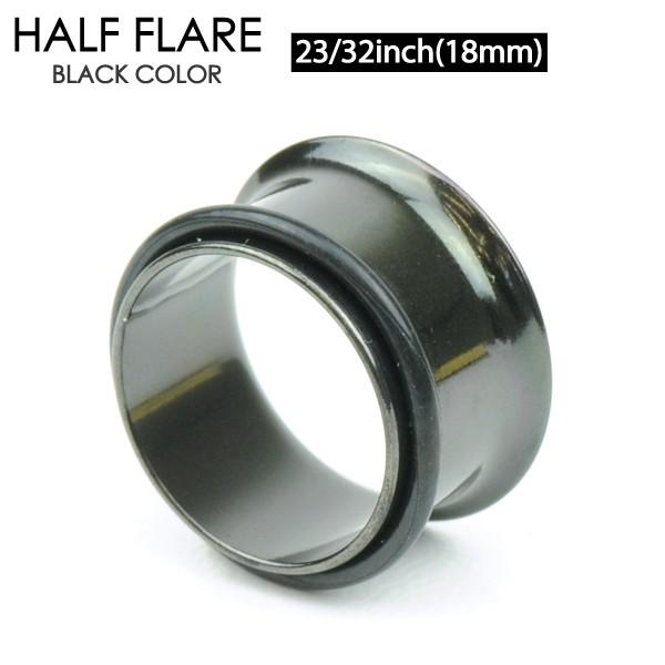 ハーフフレア ブラックカラー 23/32インチ(18mm) アイレット サージカルステンレス316L シングルフレア ボディーピアス BLACK ロブ 23/32inch