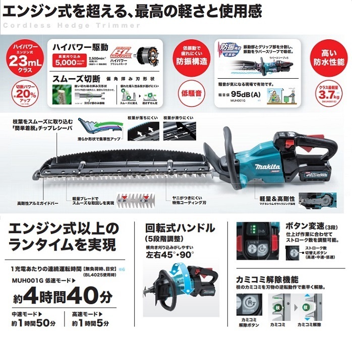 マキタ製の40Vmax充電式ヘッジトリマのMUH001GRDXです。