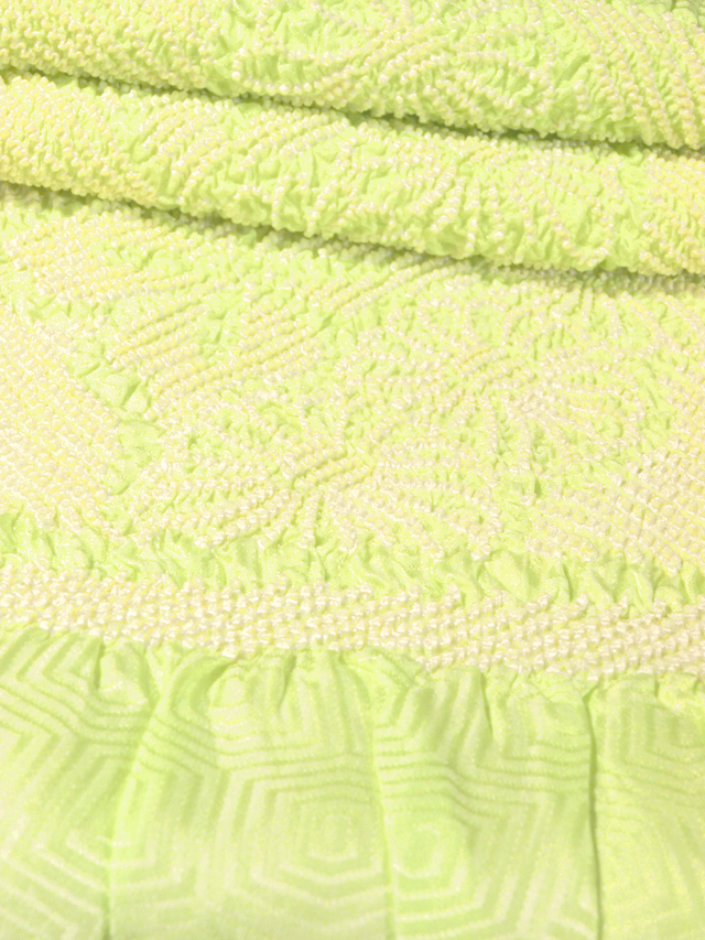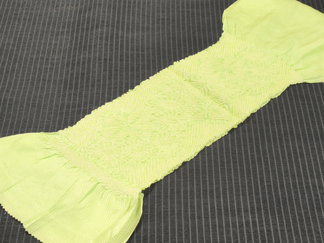 ななめ縞に菊と花菱文 萌黄色無地 綸子 絞り 帯揚げ 中抜き TALK06015風楽 |