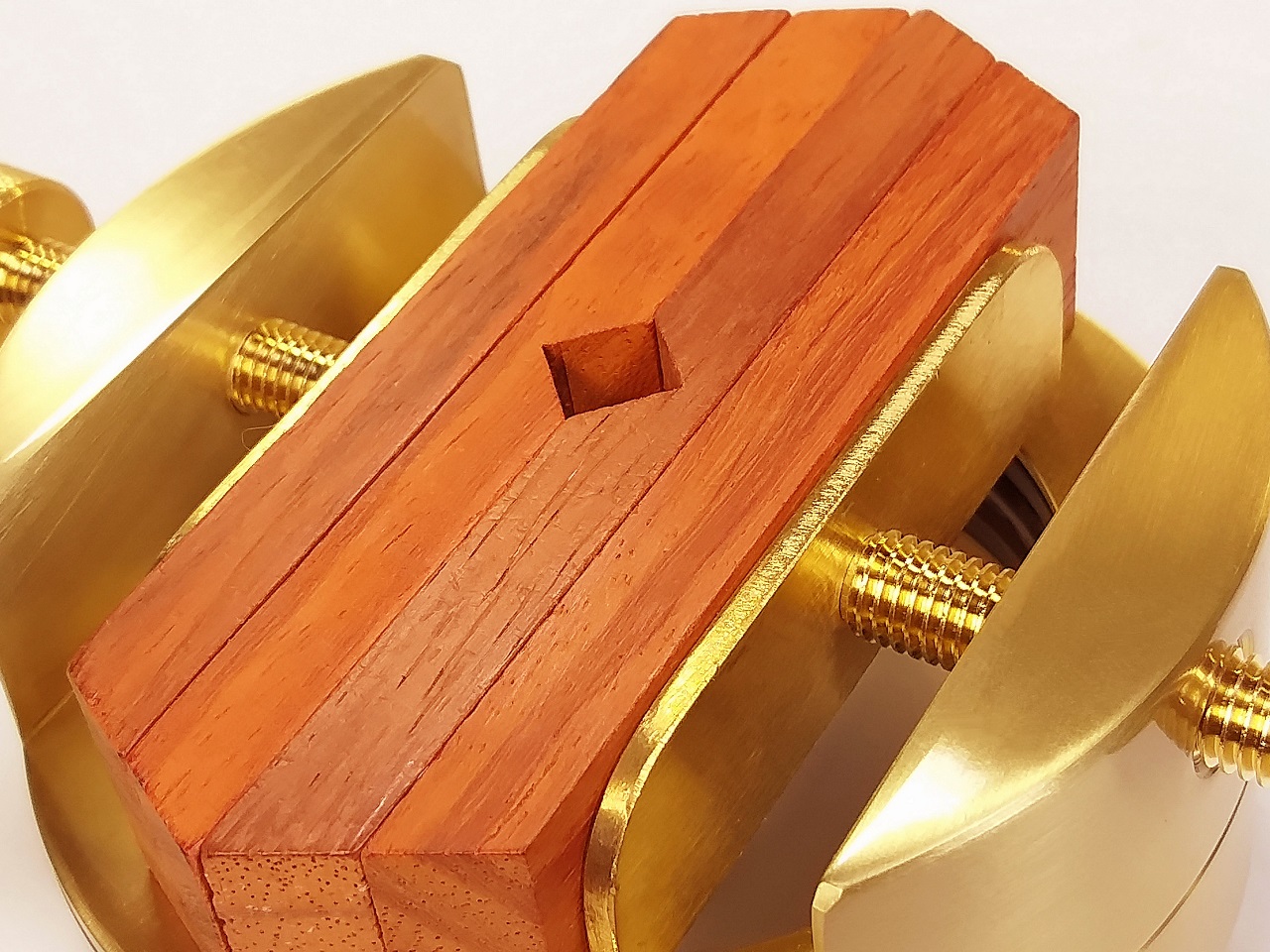 この種の特種純真鍮無垢製彫刻専用台座の硬度が高く、非常に強靭なので、使い心地は、最高です。彫刻専門家向き専用の品です。最も高級な素材を使用し、最も高い技術を引用したもので、各種珍稀石材、玉材、珍稀銘木木材、象牙、軟質金属(銅、真鍮、アルミ、チタン等)、各種プラスチック等の素材に使用するのにとても適しています。