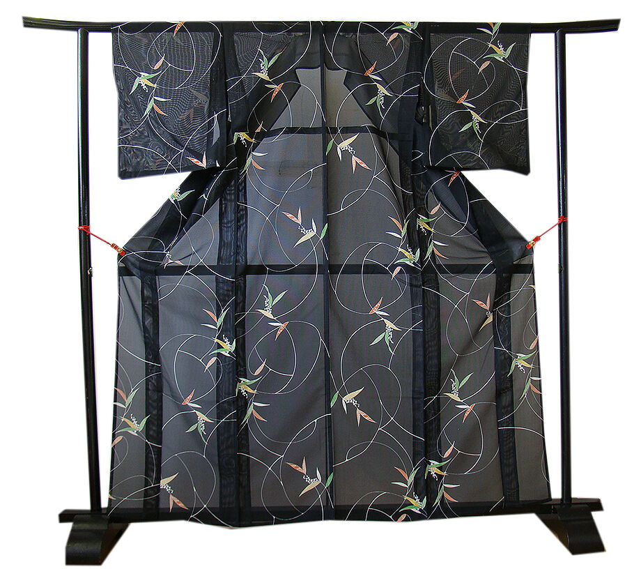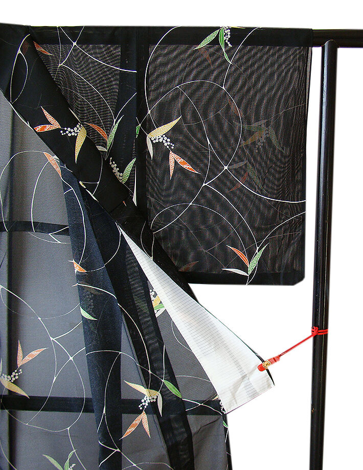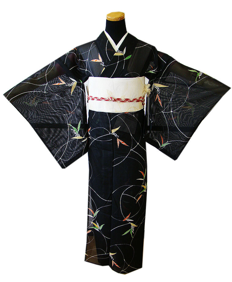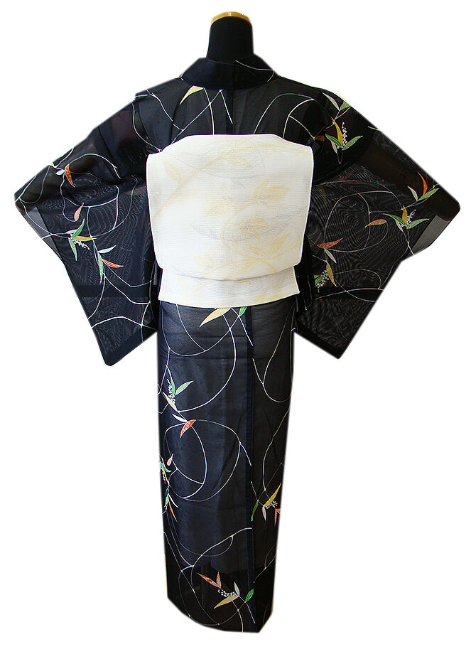 きものしらゆり 身丈155cm 裄63cm 7~8月 夏物 ポリエステル 洗える 絽 黒地 小紋 帯 帯〆 セット 身長148cm~154cmの方に最適 U815 收藏