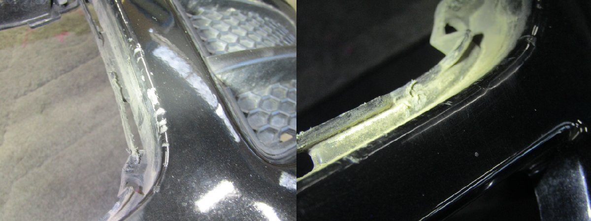 ※塗装状態から再塗装品と思われます。 ■取り付け部が5カ所切れています。 ■爪に補修跡が見られます。(8枚目参照) ■左:サイドに3×10㎝の塗装ヒビと、1×1㎝の剥げがあります。 ■左:上部の取り付け部分の下部に11×4㎝の擦り傷があります。 ■左:下部に3×1㎝の擦り傷があります。 ■左:グリルがはまる位置のラインに、押し傷が多数あります。 ■中央:下部ラインに6×1㎝の削れ傷があります。 ■中央:グリルが入るラインに、押し傷が多数あります。 ■右:中央の縦ライン上に、2×1㎝、2×2㎝の塗装剥げがあります。 ■右:ヘッドライトウォッシャー下部に液だれがあります。 ■右:下部に50×3㎝の塗装ヒビがあります。 ■底面:全体に削れ傷が多数あります。 ■全体的に線傷、水垢、汚れが多数あります。 ■画像に写るものがすべてとなります。 |