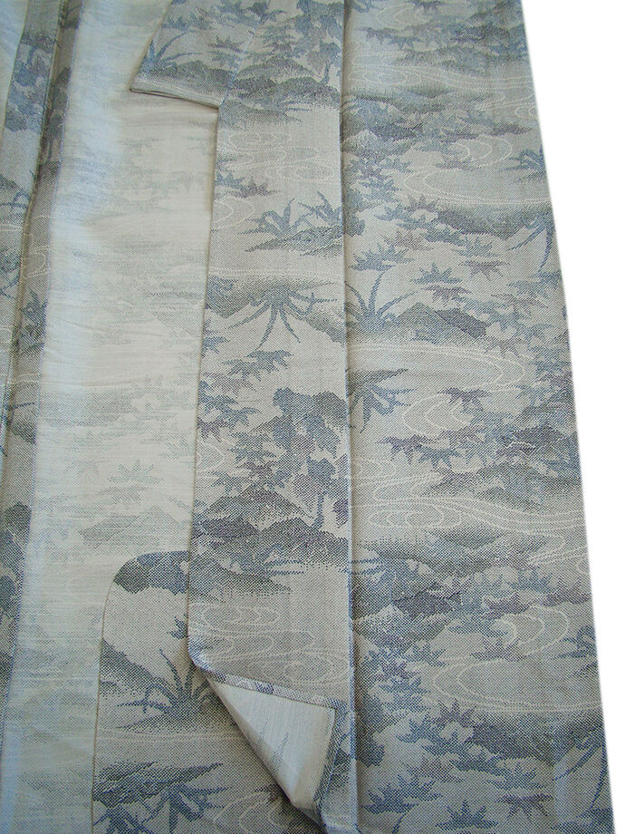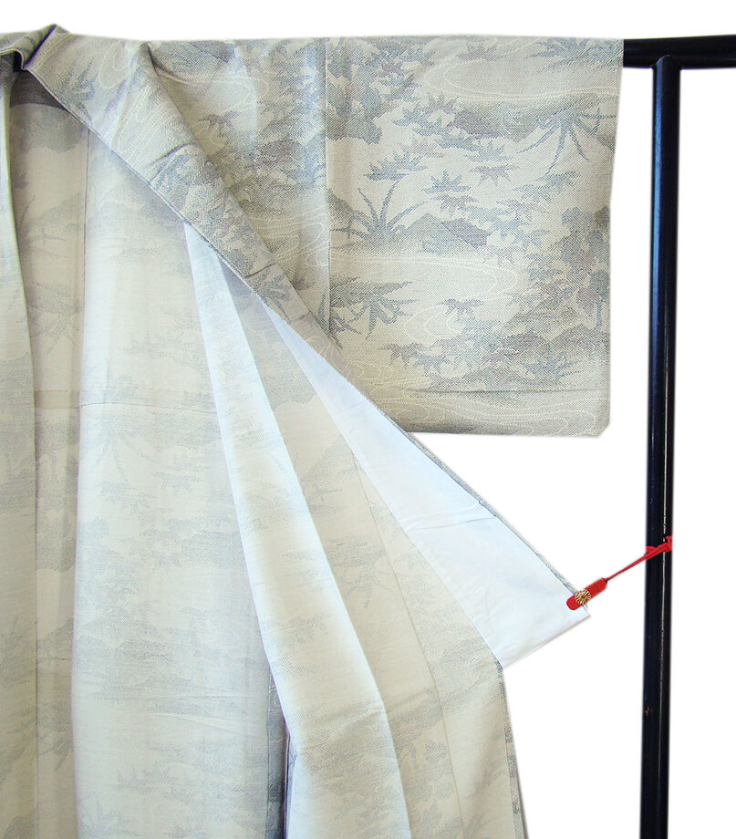 | 商品説明 | こちらのお品は「単衣」ですので5月、6月、9月にお召頂ければと思います。 着物には、大きく分けて「袷(あわせ)の着物」と「単衣(ひとえ)の着物」と「夏着物」があります。 反物(表地)を着物に仕立てるときに、裏地類をつけるものを袷の着物、 つけないものを単衣の着物と呼び、胴裏や八掛といった裏地がつかない一枚ものの着物です。 また裏地がないため、座る時などにヒップのラインが目立たないよう、 居敷当て(いしきあて)の生地をつけることもあります。 居敷当ては付いておりません。 とてもしなやかなさらりとした柔らかな手触りの着心地良い単衣仕立ての紬地、 白色地に青、抹茶色等の草木や流れ柄等の織柄が粋な着物姿を演出しております。 |