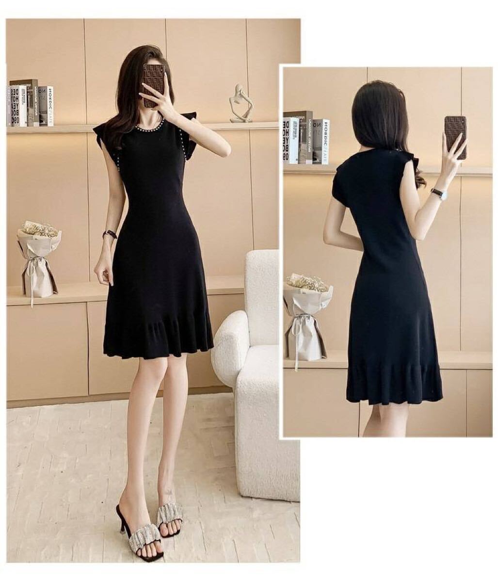 レディースワンピース 膝丈 ノースリーブ Aライン フォーマル 上品ワンピース ブラック キャバ嬢 セクシー エロかわ Mサイズ 收藏