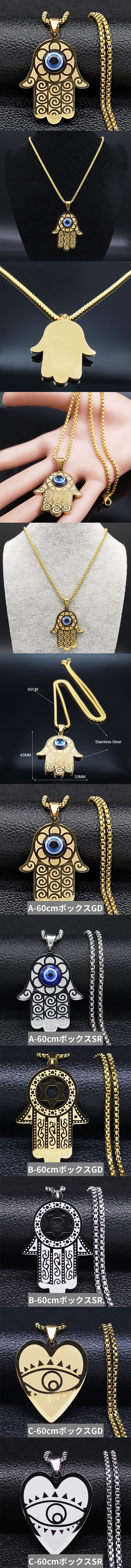 ネックレス ステンレス 青 ブルー トルコ ハムサ レディース 女性 メンズ 男性 悪魔 デーモン 目 アイズ ハンド ファティマ ジュエリー 襟 收藏