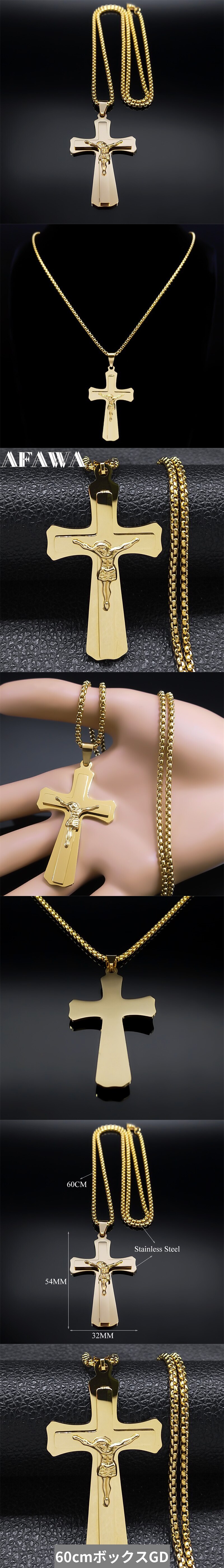 ペンダント ネックレス ステンレス ゴールド チェーン クロス メンズ 十字架 男性 イエス スチール カラー 宗教的 ヒップ ホップ 收藏