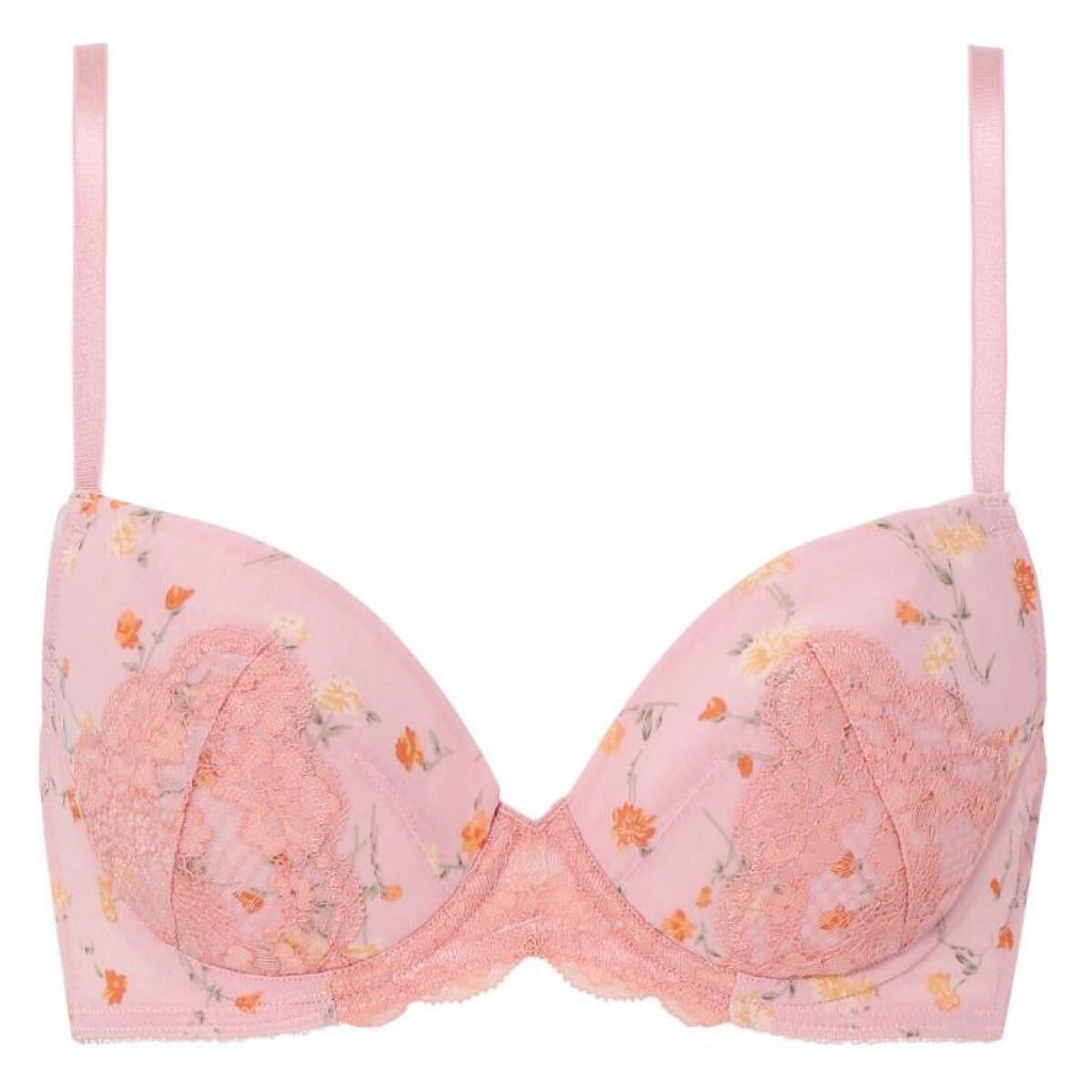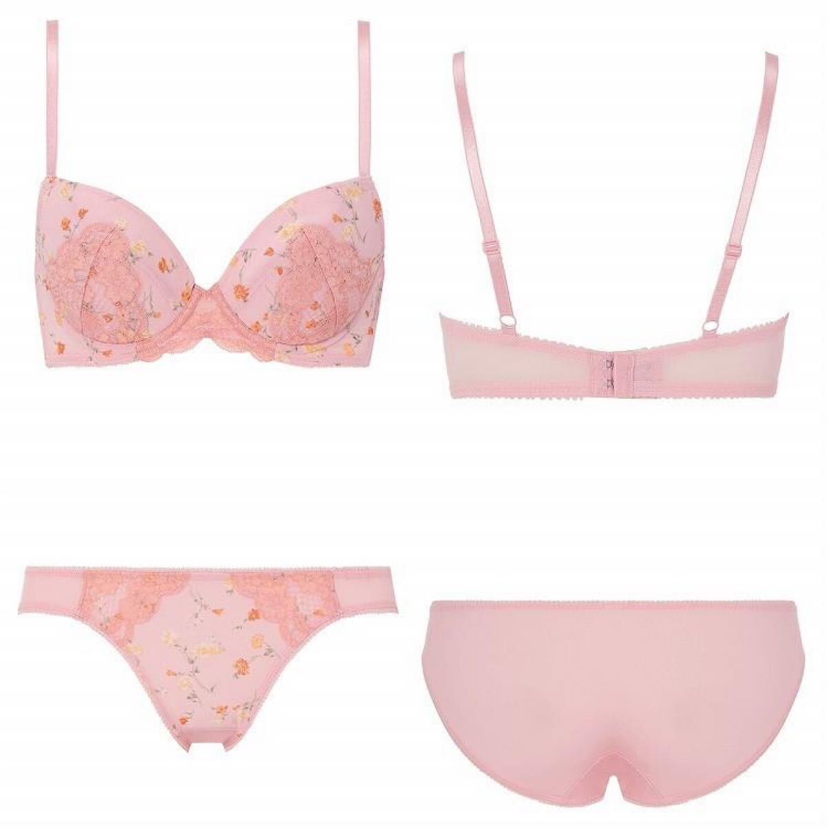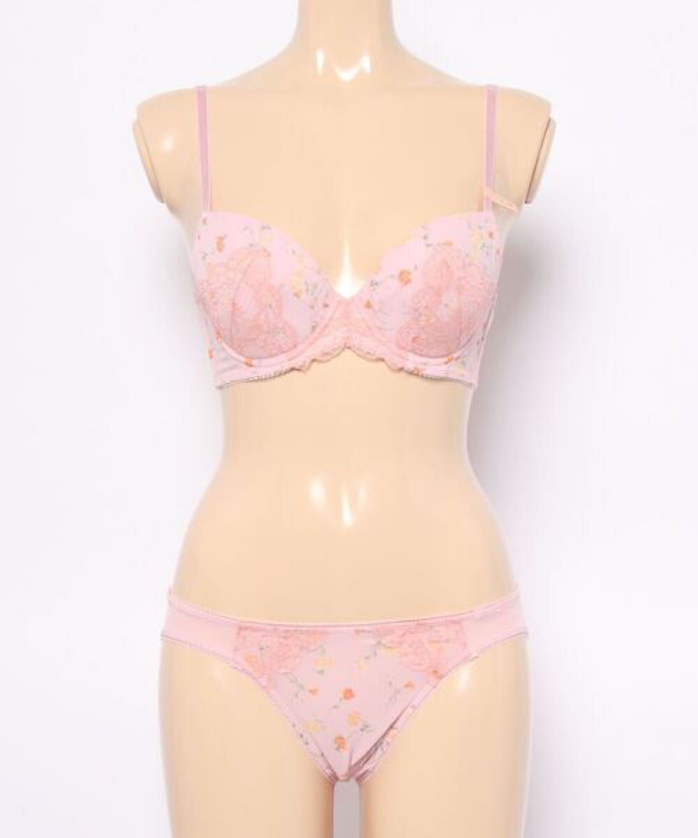 【送料無料】下着 上下セット 谷間くっきりブラ&ショーツセット フライングフラワー 夢みるブラ谷間メイク 胸元強調 ピンクD65 收藏
