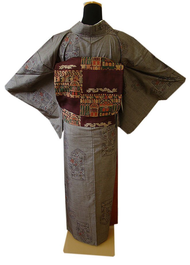 ●帯:正絹しなやかな扱い易い紬袋帯。   USED品、   六通柄。
