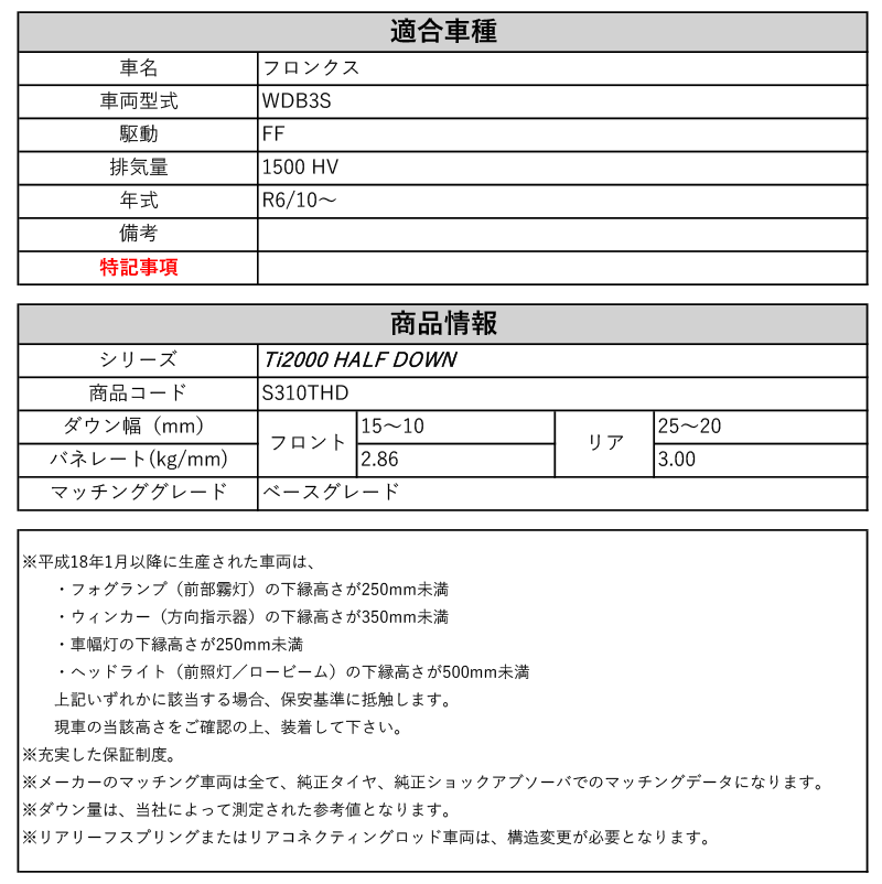 [RS-R_Ti2000 HALF DOWN]WDB3S フロンクス_ベースグレード(2WD_1500 HV_R6/10~)用車検対応ダウンサス[S310THD] 收藏