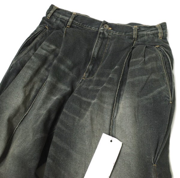 新品 KHOKI コッキ 25SS 日本製 Pleat-design denim pants プリーツデザインデニムパンツ 25ss-p-09 2 Black ジップフライ ジーンズ g21119 收藏
