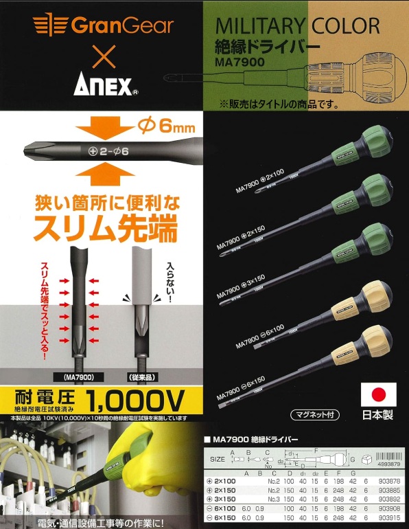 アネックス MA7900 -6x100 絶縁ドライバー デザートカラー ANEX 兼古製作所 903908 小型便 收藏